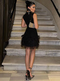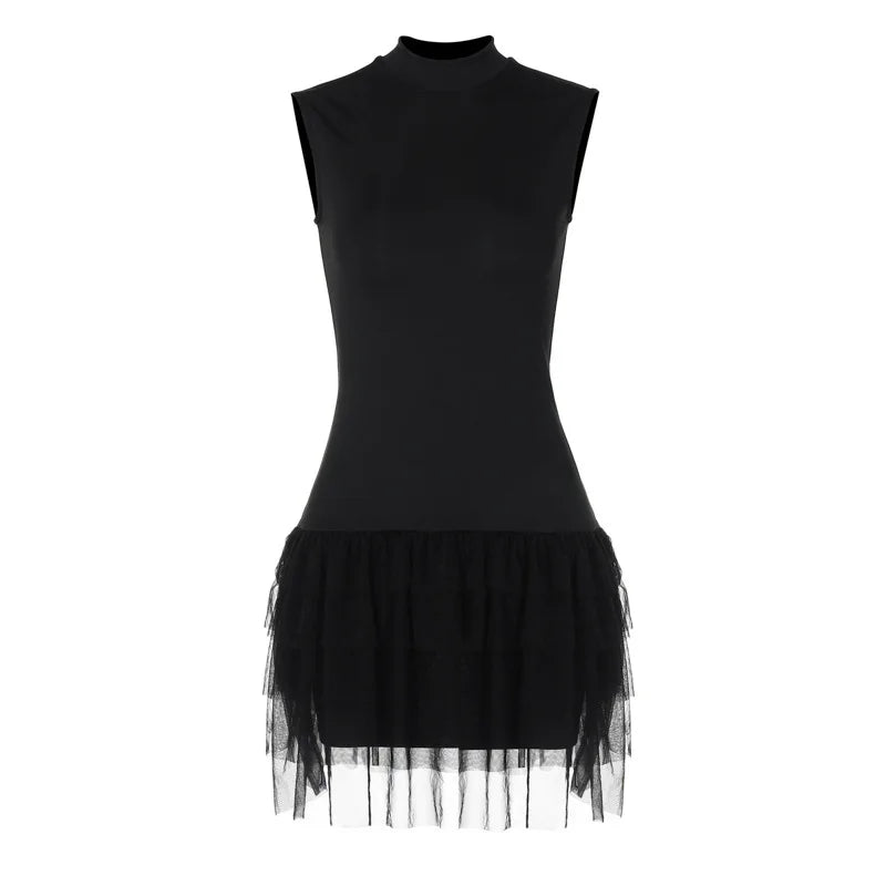 Black Sleeveless Mesh Patchwork Mini Evening Prom Dresses Women's Summer Sexy Bodycon Slim Dress 2024 Party Streetwear