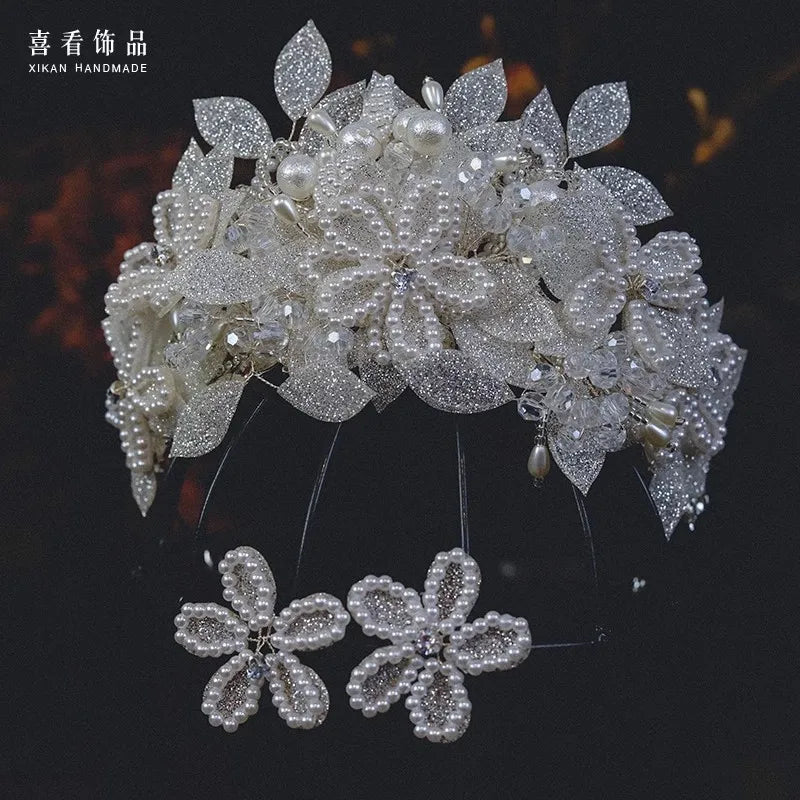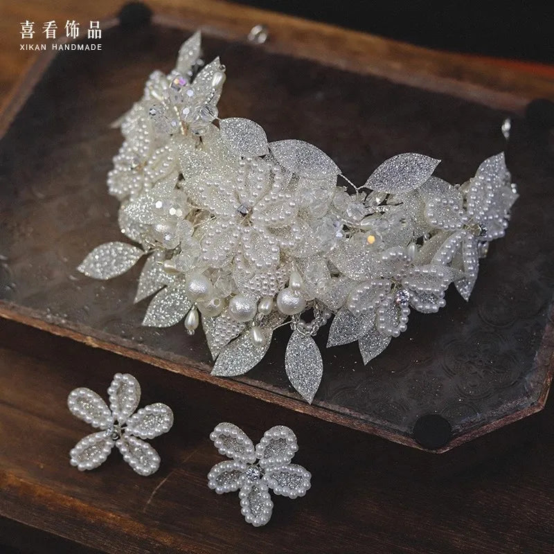 CC Luxury Tiaras Wedding Accessories Women Hairwear Bridal Headpiece Engagement Hair Ornaments Flower Crown With Earrings AN083