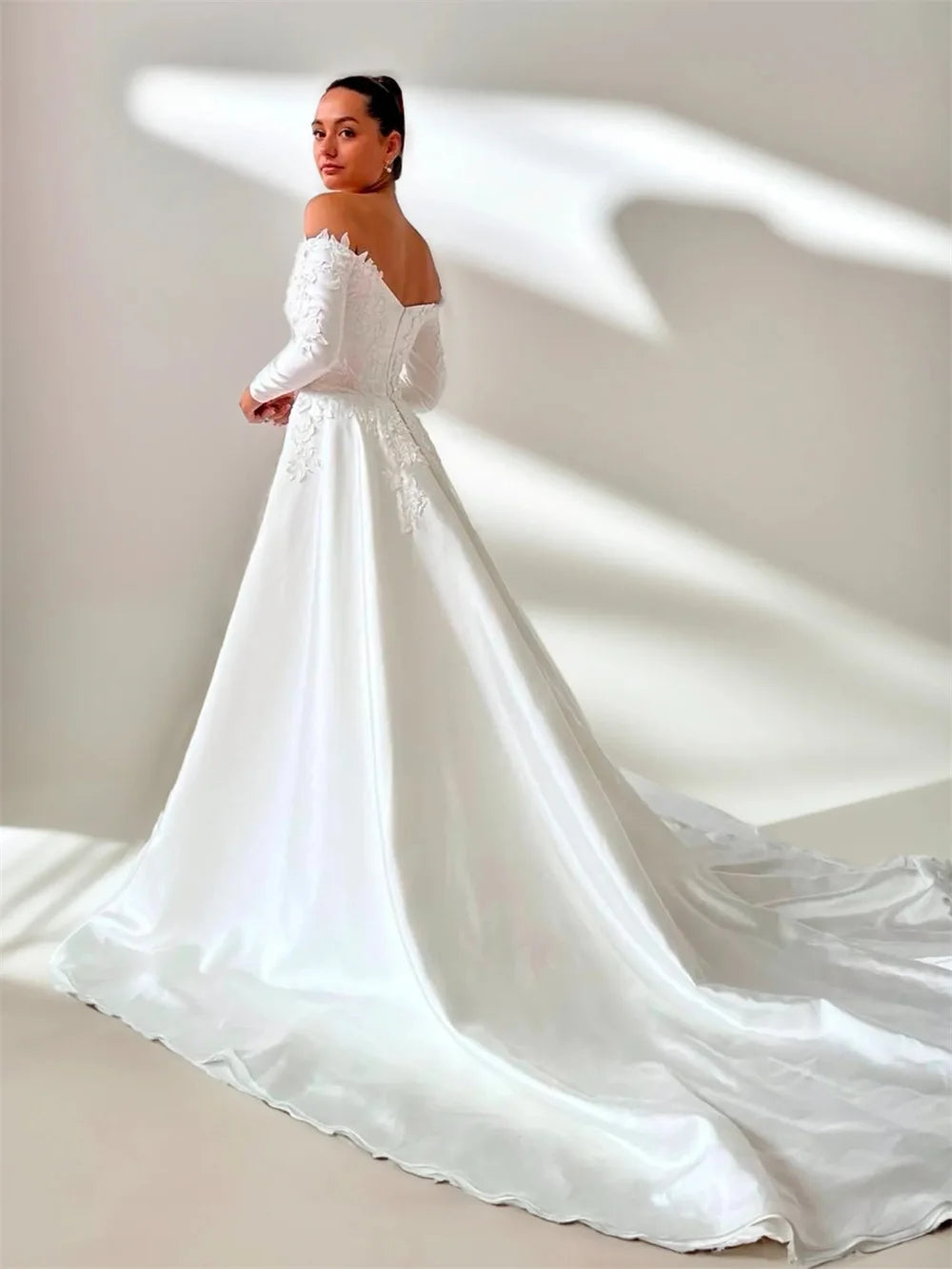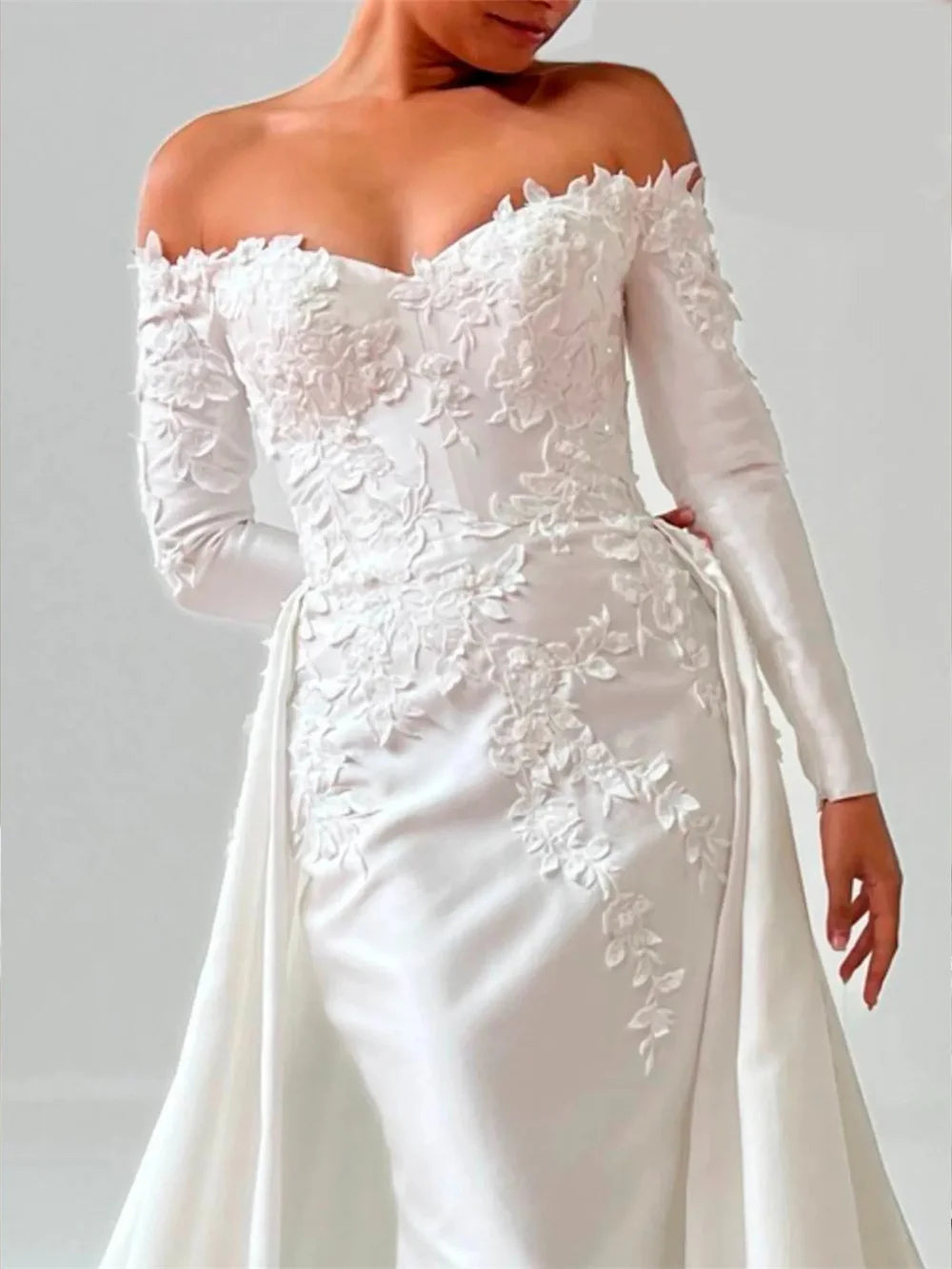 Charming Off The Shoulder Lonf Sleeves Sweetahrt Lace Applique Mermaid Wedding Dresses With Detachable Train Custom Made 2026