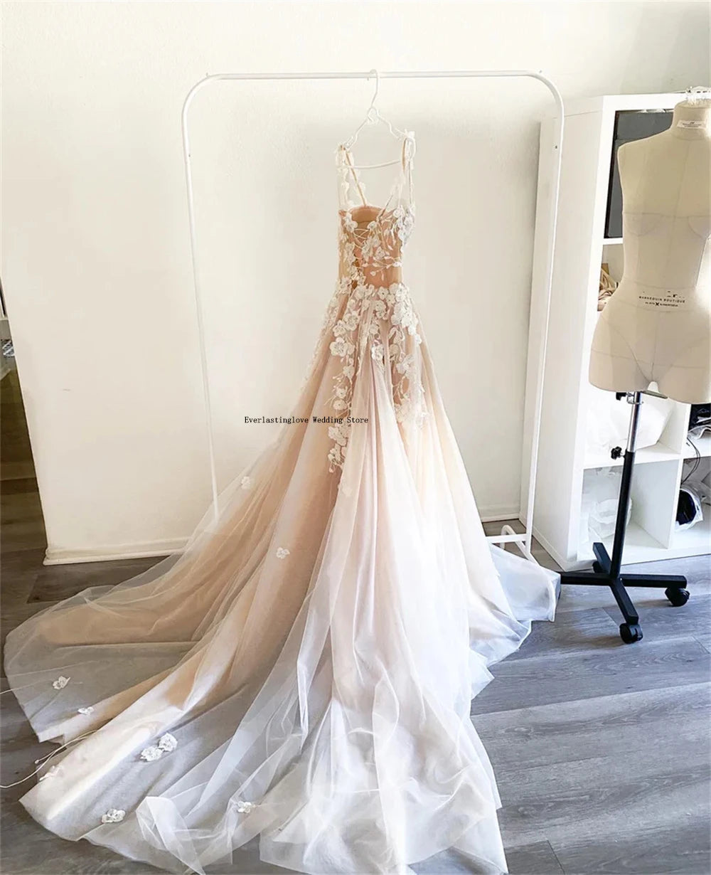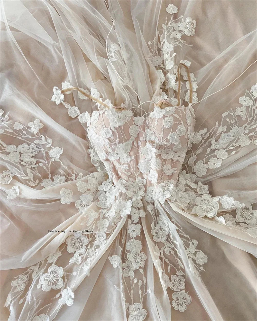 Charming Two Straps 3D Fliwer Lace Applique Bridal Grown A Line Wedding Dresses Custom Made 2025 Vestido De Noival