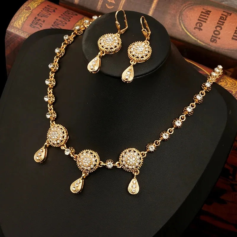 Classic Hair Accessories for Women Water Drop Rhinestone Hair Chain Algeria Bridal Crowns and Tiaras In Gold Color