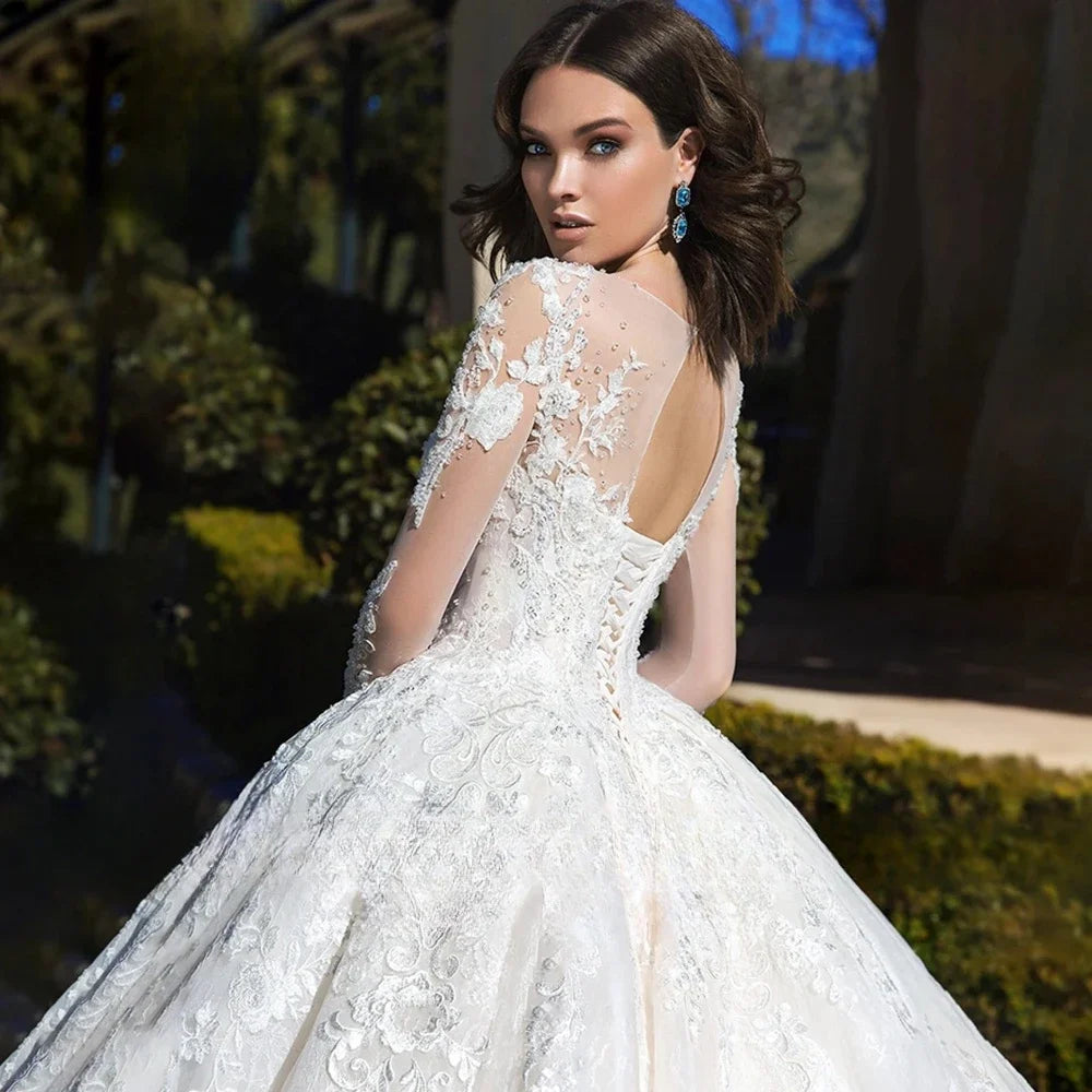 Customized Ashley Carol Wedding Dresses 2025 Long Sleeve Bride Dress Crystal Lace Appliques Scoop Bridal Gown Vestido De Novia