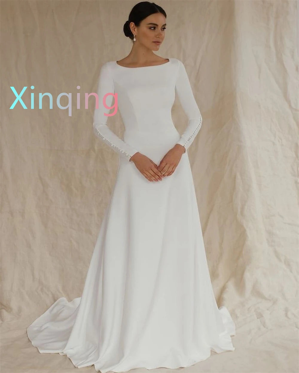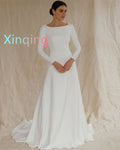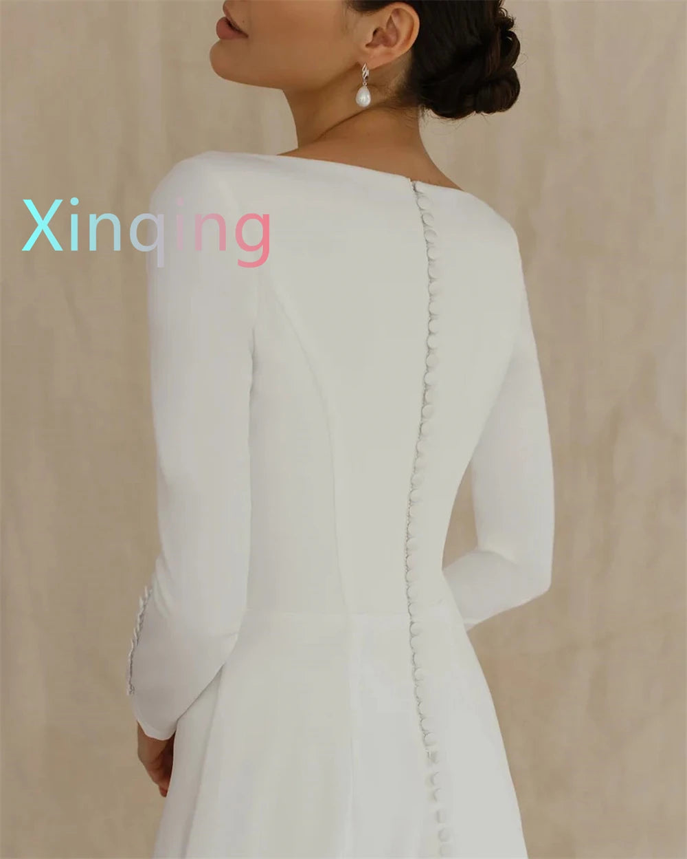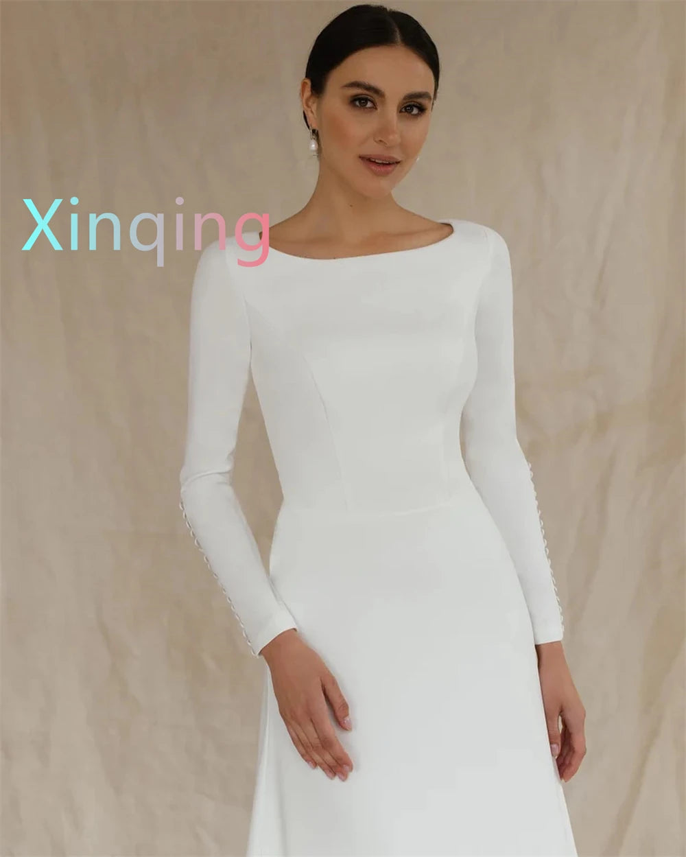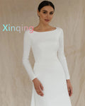 Customized Dreamy White Wedding Dresses High Quality Long Sleeves Formal Dresses Classic Midi Dresses 2025 Bride Gowns for Women