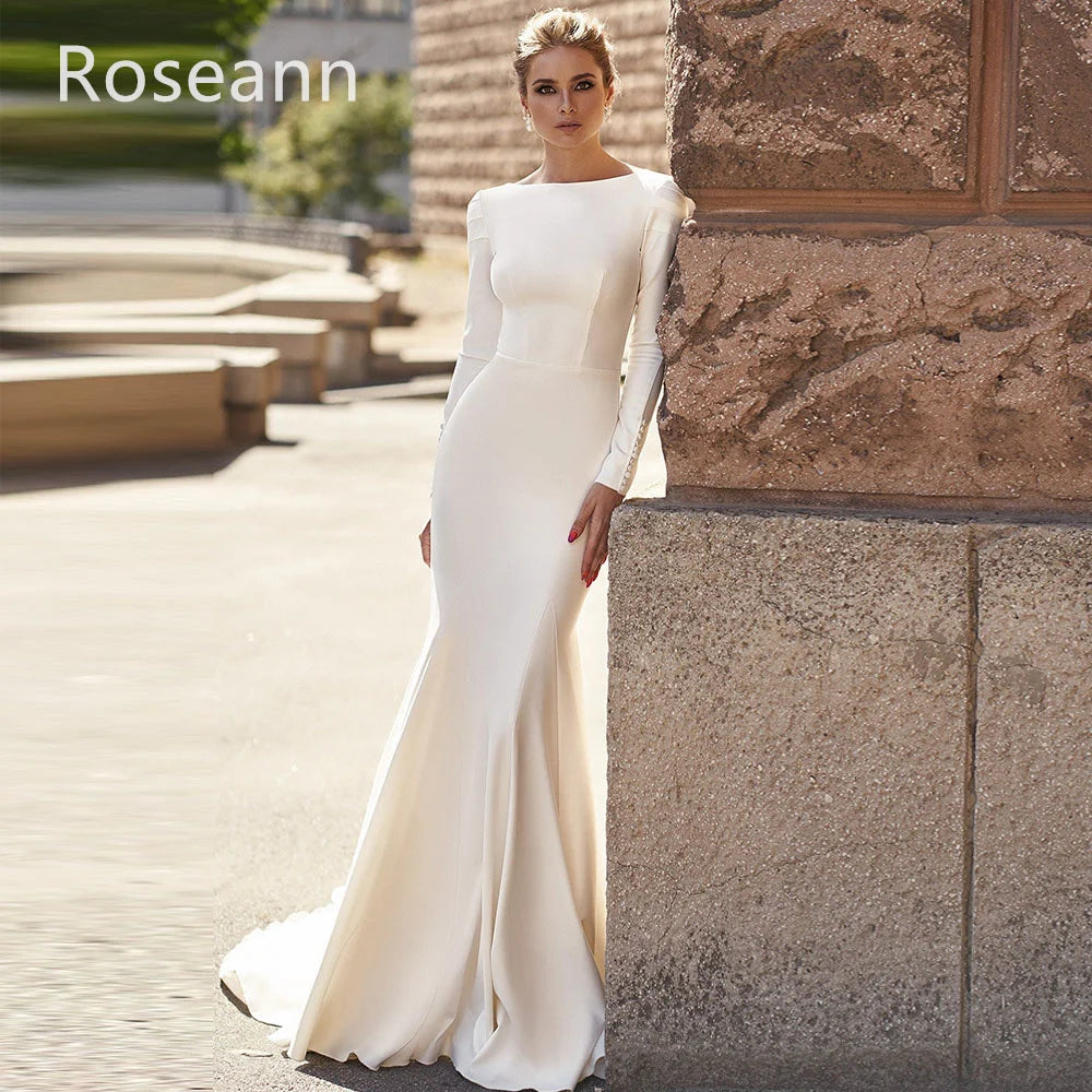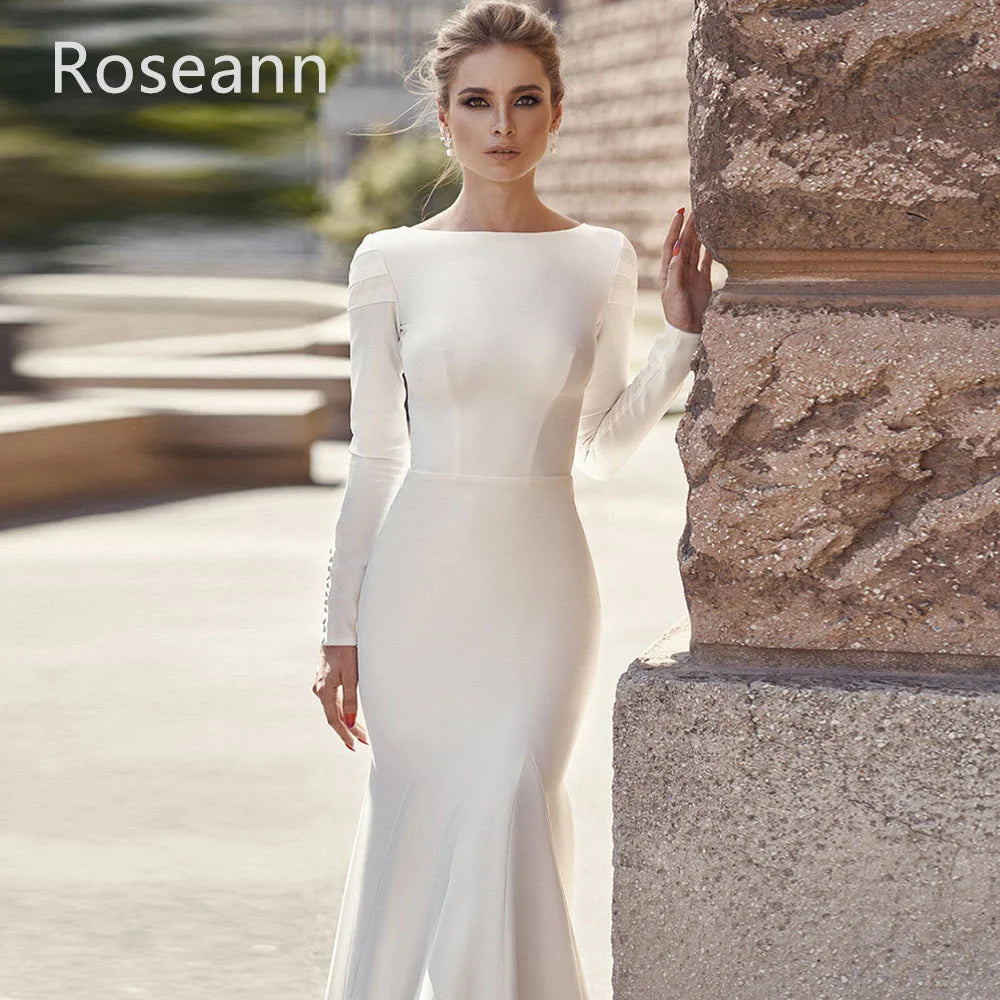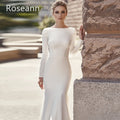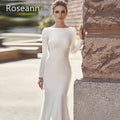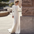 Customized Muslim High Quality Ivory Mermaid Wedding Dresses O-Neck Button Satin Draped Pleat Full Bride Gown robe de mariée