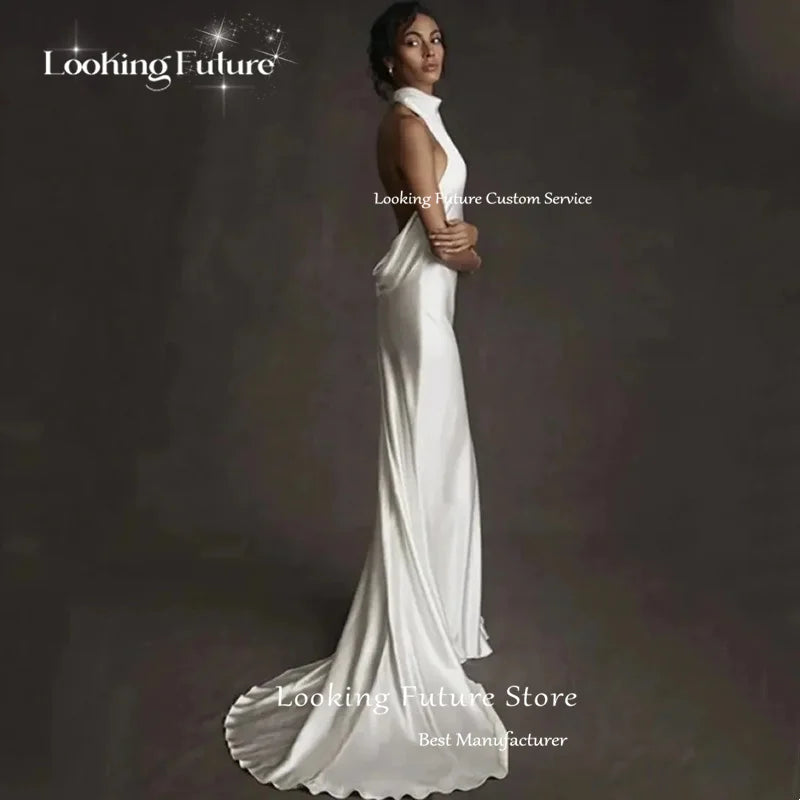 Customized Simple Mermaid White Wedding Dress Sexy Backless Bridal Halter Sleeveless Gown Vestido Elegant Floor-Length 2025