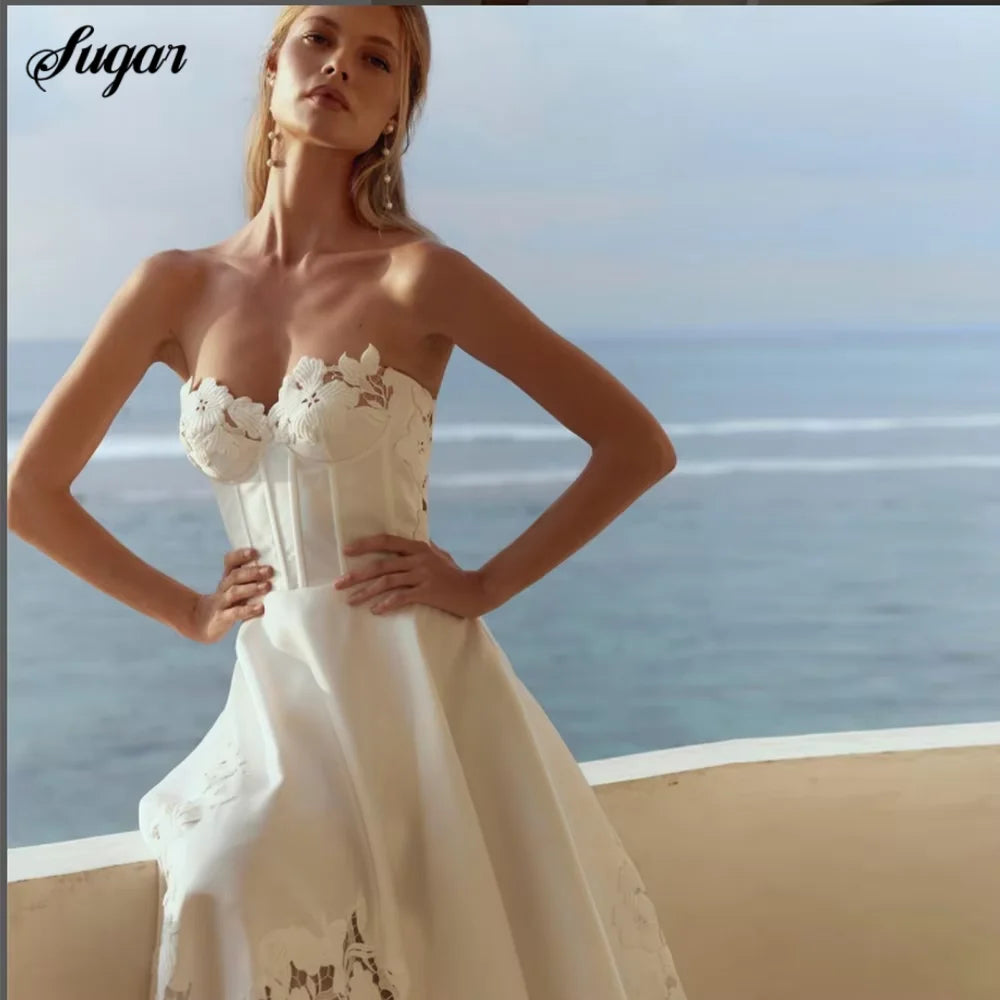 Customized Sweetheart Wedding Dress Off Shoulder Lace Appliques Illusion Sleeveless 2025 Backless A-Line Simple Bridal Gown