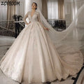 Customized V-Neck Sequin Appliques Long Sleeves White Wedding Dress 2025 Ball Gown Floor Length Sweep Train Lace Up Bridal Gown
