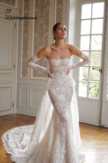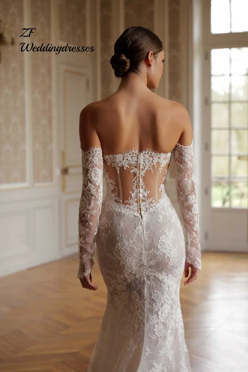 Customized Vintage Lace Mermaid Wedding Breathtaking Off Shoulder Long Sleeves Bridal Gowns Dress Vestido De Novia