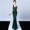 DEERVEADO Elegant V Neck Sequin Evening Dress Long 2025 New Women Mermaid Formal Dress Party Gown Bodycon Maxi Prom Dress