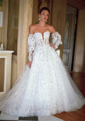 Detachable Long Sleeves V-ncek Full Lace Applique Brial Grown A Line Wedding Dresses Custom Made Bridal Grown 2025 Vestido De No