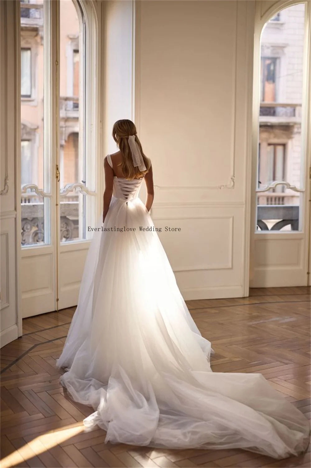 Dreamy Two Straps V-neck Bridal Grown A Line Wedding Dresses Tulle Sweep Train Custom Made 2026 Vestido De Noival