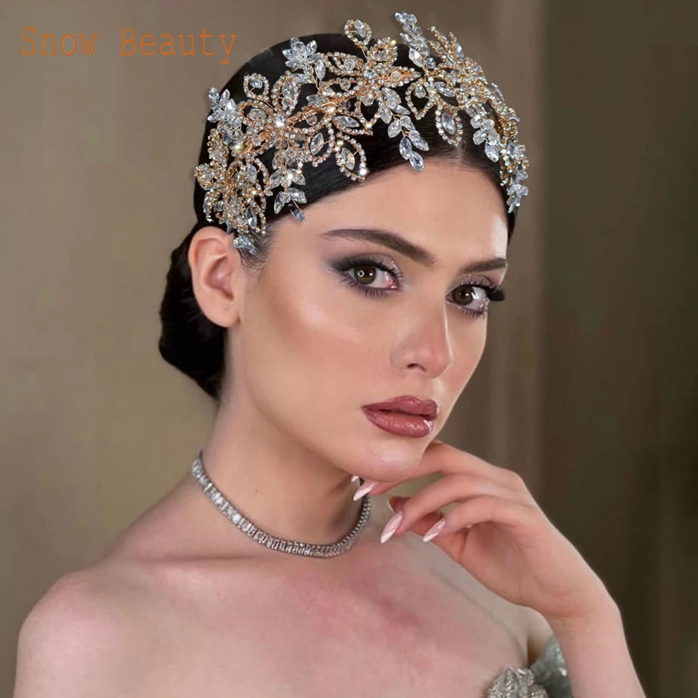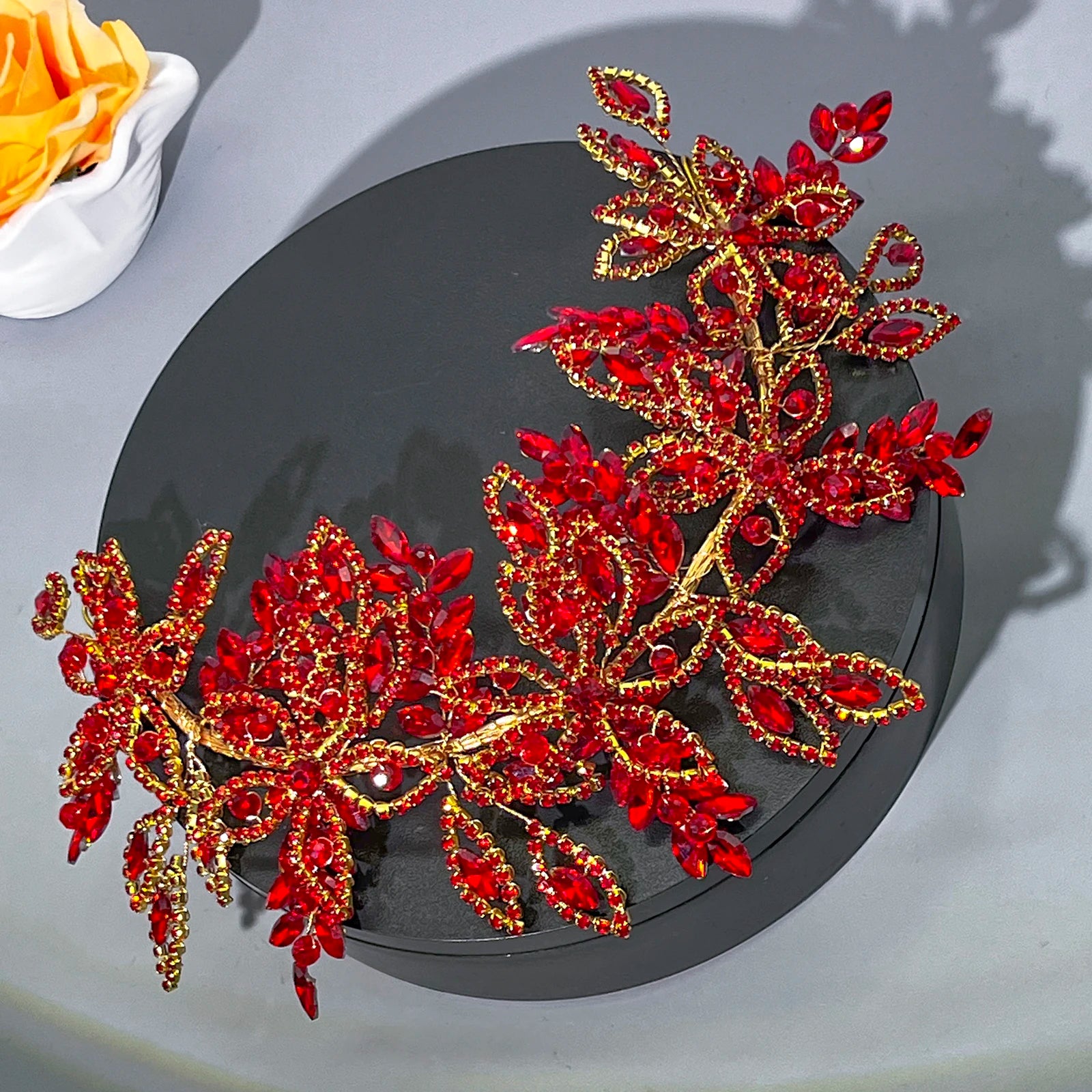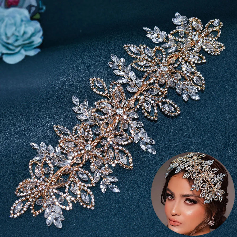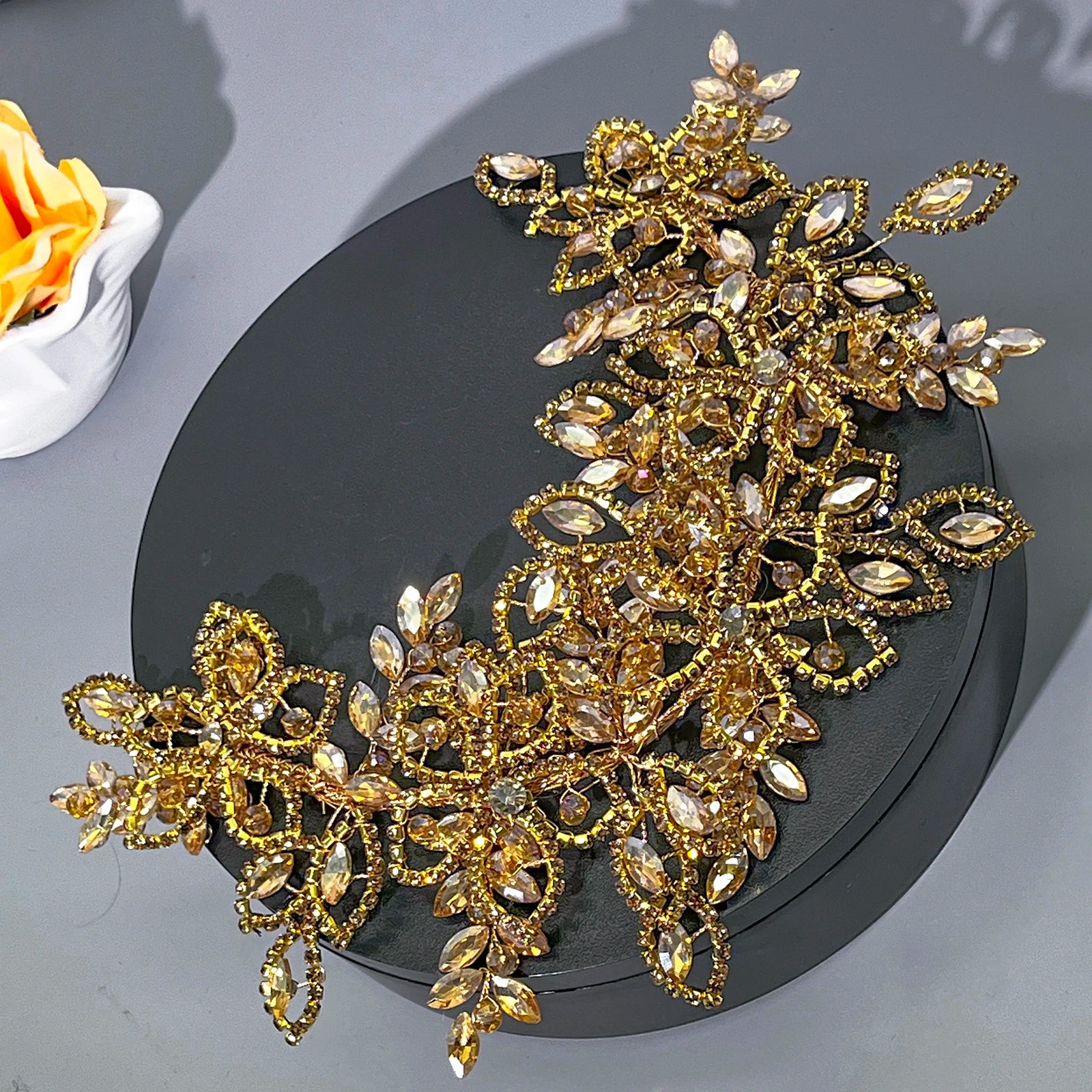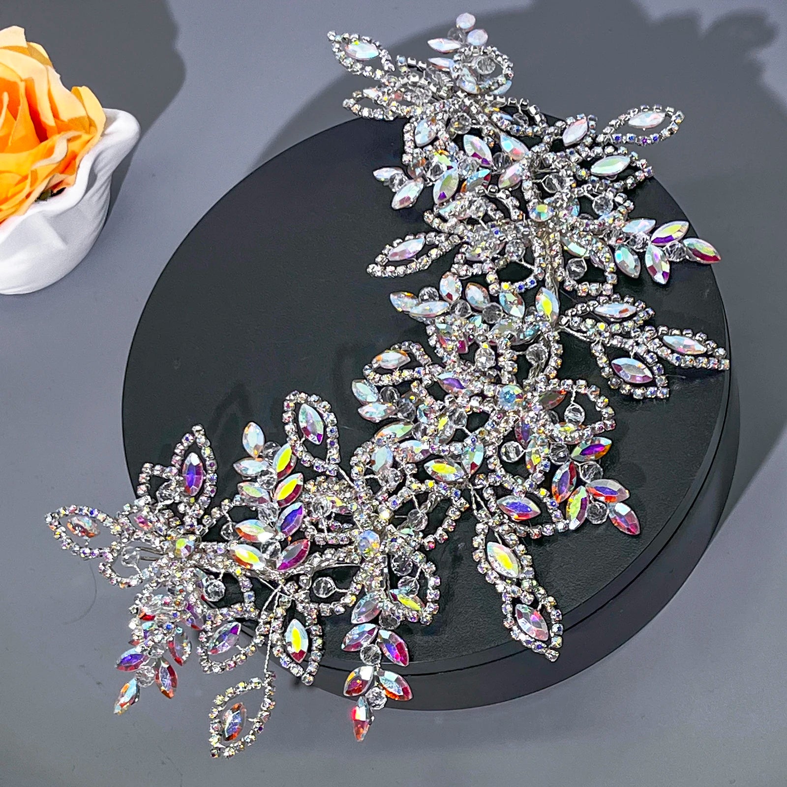DZ087 Colorful Bridal Headband Multi Colored Rhinestones Tiara Banquet Headpieces Party Hair Band Handmade Leaf Bridal Headwear