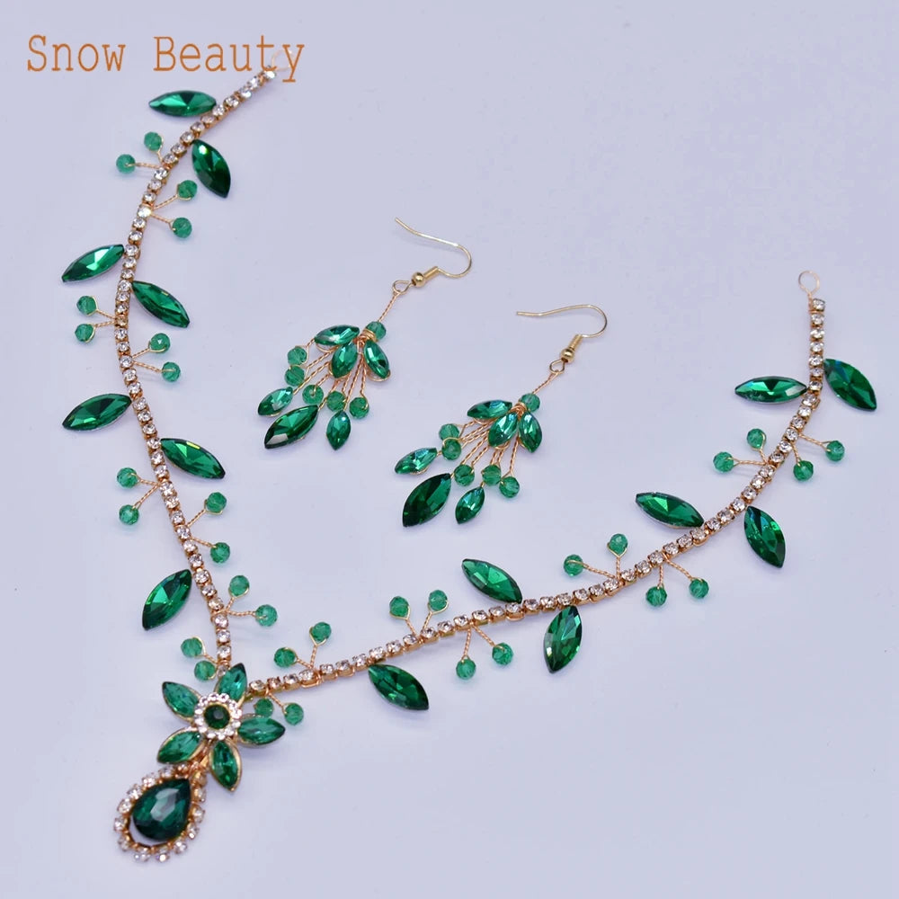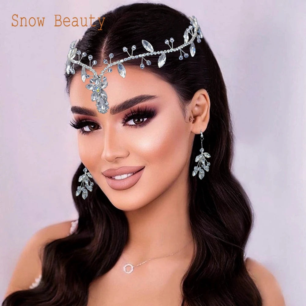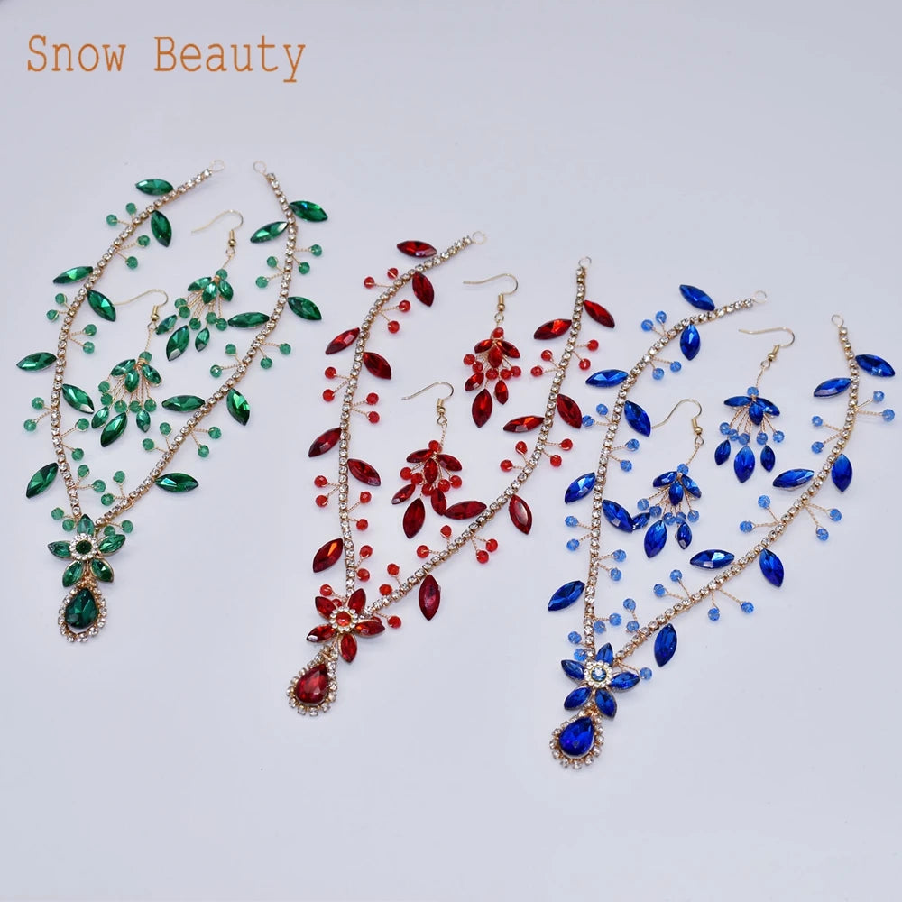 DZ093 Luxury Crystal Forehead Headpiece Red Green Blue Rhinestones Tiara Prom Festival Crystals Headband for Women and Girls