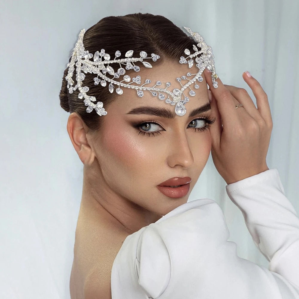 DZ215 Bling Indian Pendant Forehead Chain Jewelry Tiara Headpiece Bridal Headdress Crystal Wedding Headwear Accessories Gift