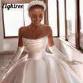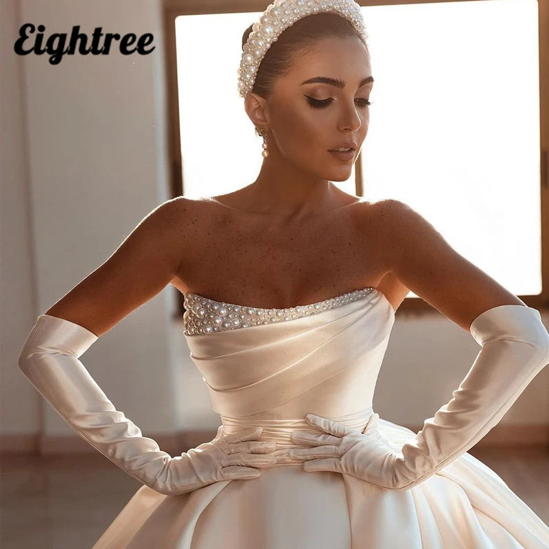 Eightree Elegant Wedding Dresses 2021 Pearls Modern Bridal Beach Boho Dress Sweep Train A-Line Satin Wedding Ball Gown Plus Size