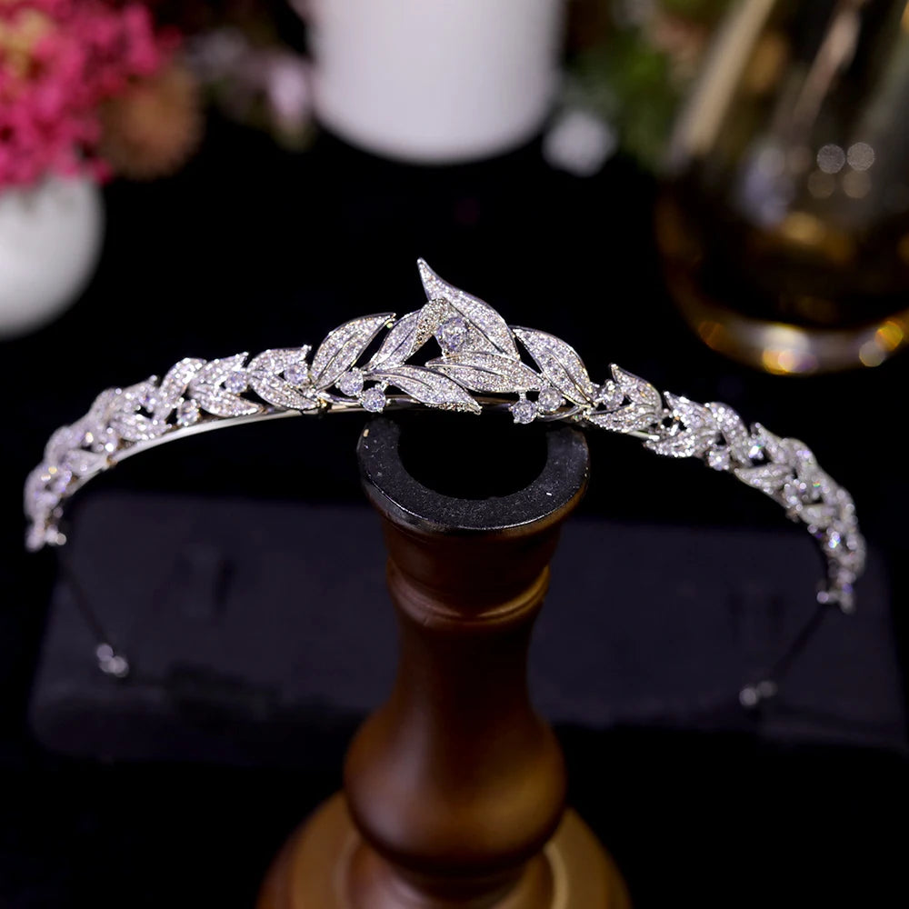 Elegant Cubic Zirconia Leaf Tiara Crown for Women Luxurious Bridal Hair Accessories Jewelry for Wedding Party