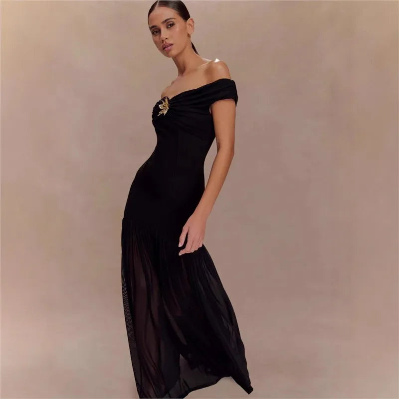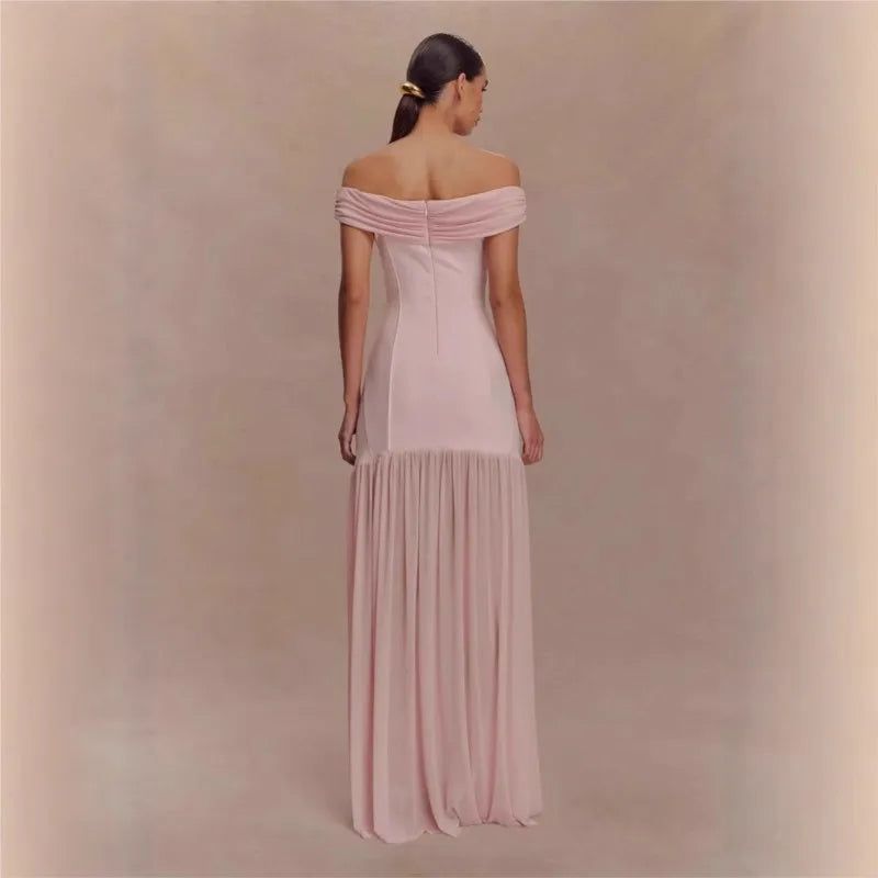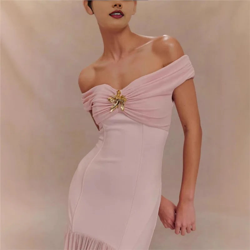 Elegant Evening Dress Temperament Vestido Sexy Dresses 2025 Woman French Simple Style Patchwork Solid Color Pleated Fashion Slim