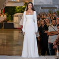 Elegant Long Sleeve Square Neck A-Line Wedding Dress With Train Customizable Bridal Gown For Bride  Reception Party Ceremony