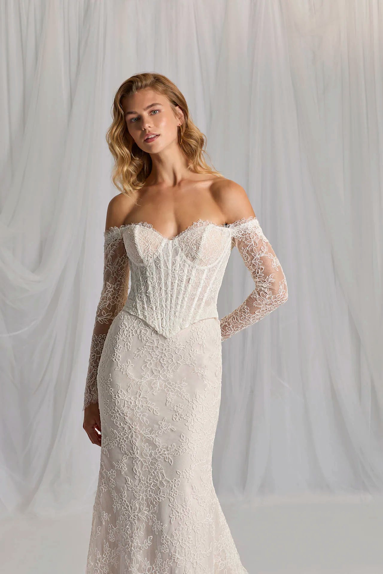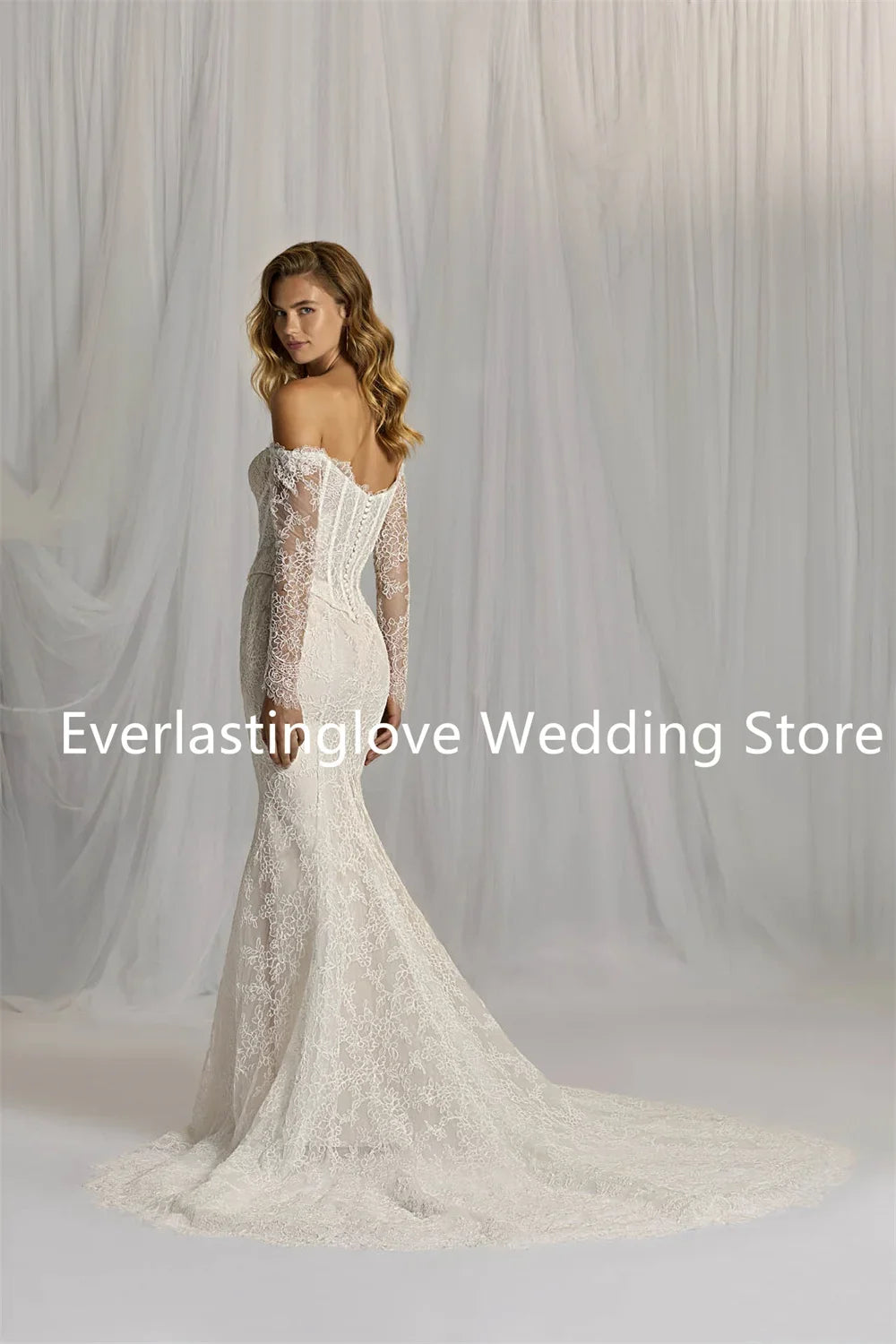 Elegant Off The Shoulder Long Sleeves Sweethat Full Lace Mermaid Wedding Dresses Custom Made 2026  Rode De Morrie