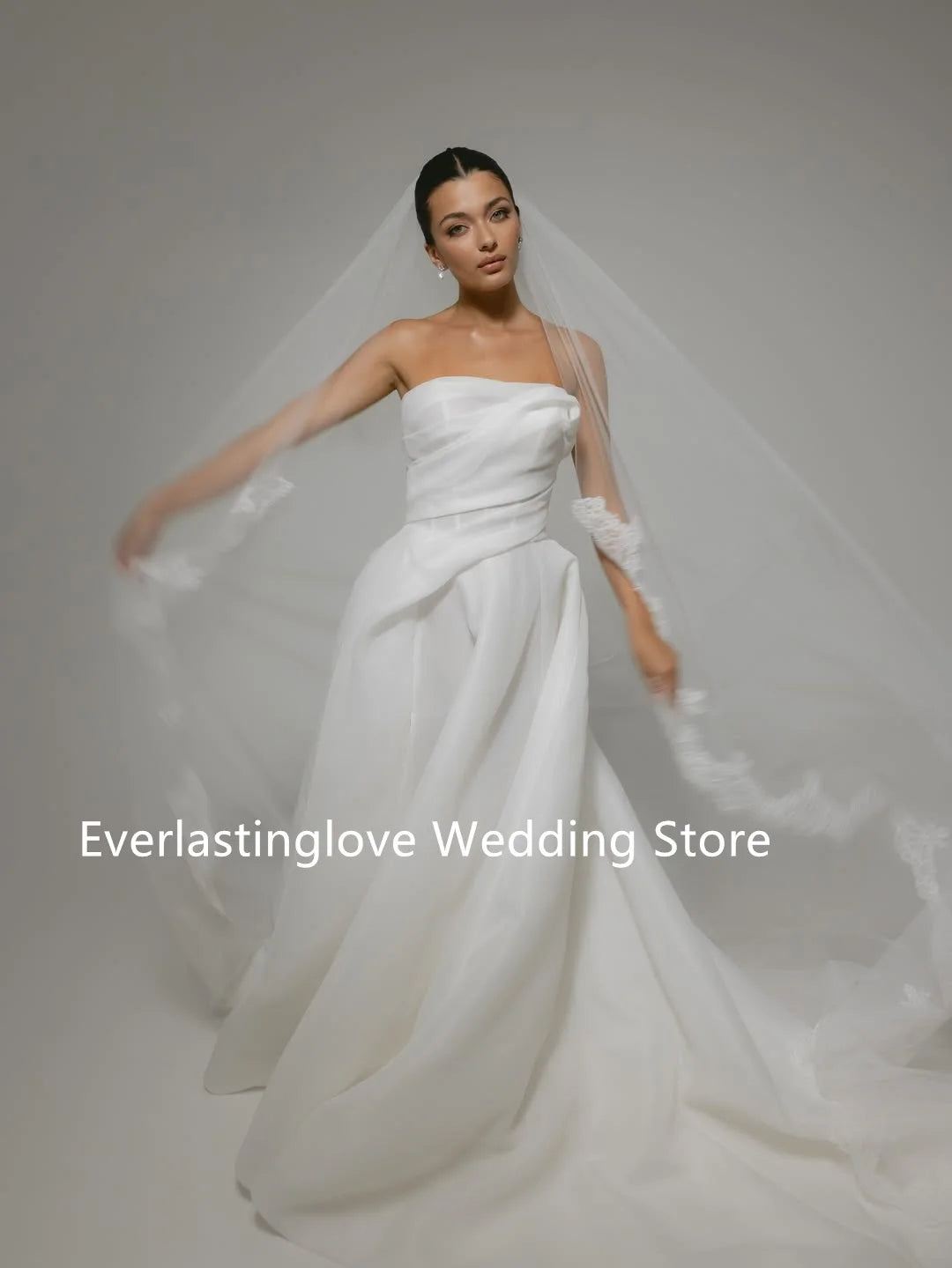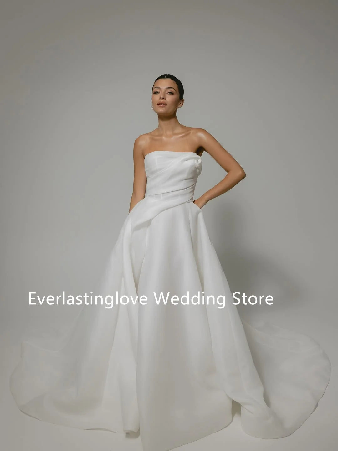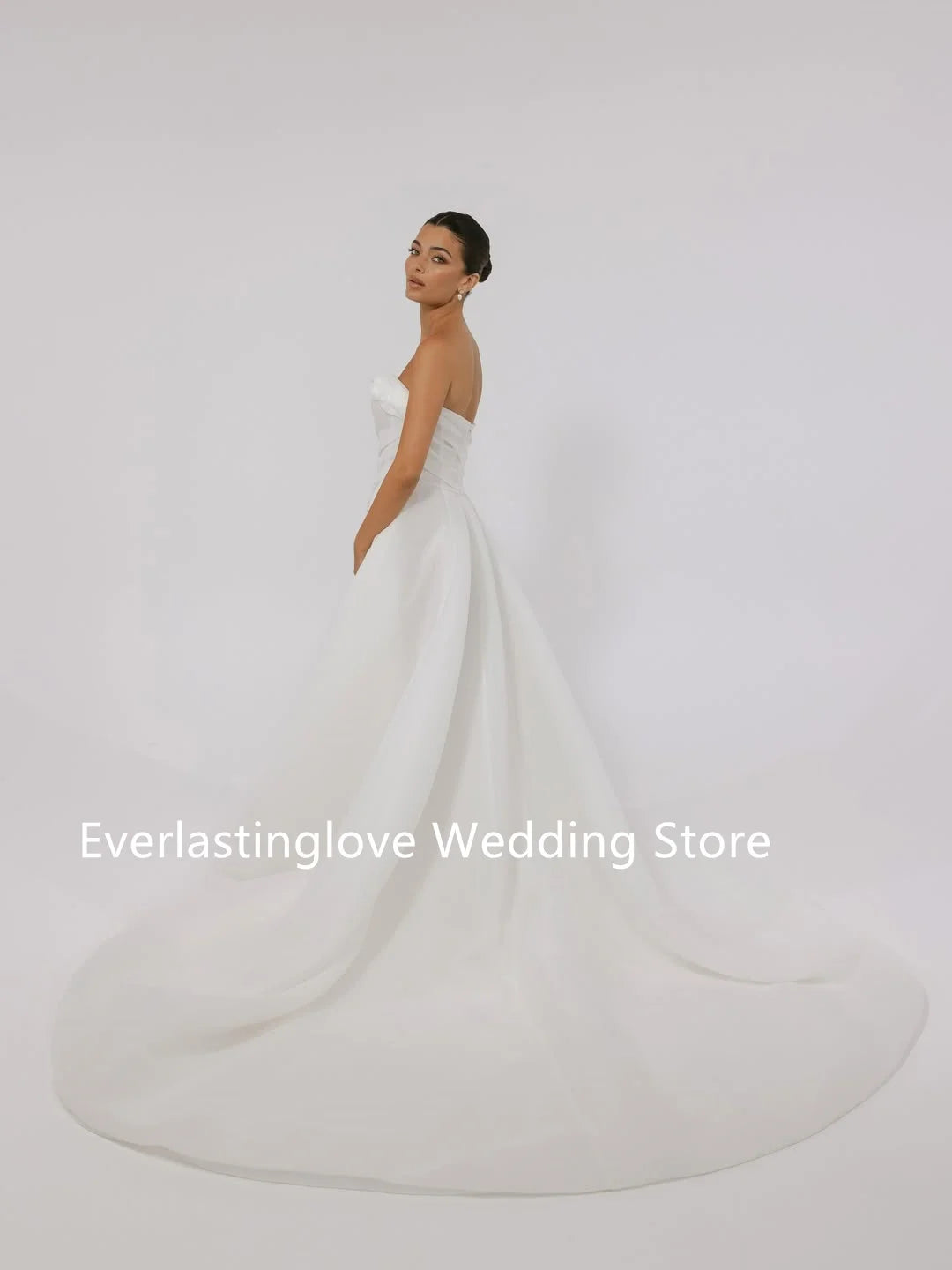 Elegant Pleat Strapless Organza A Line Wedding Dresses Side Slit Custom Made Bridal Grown 2026 Vestido De Noival