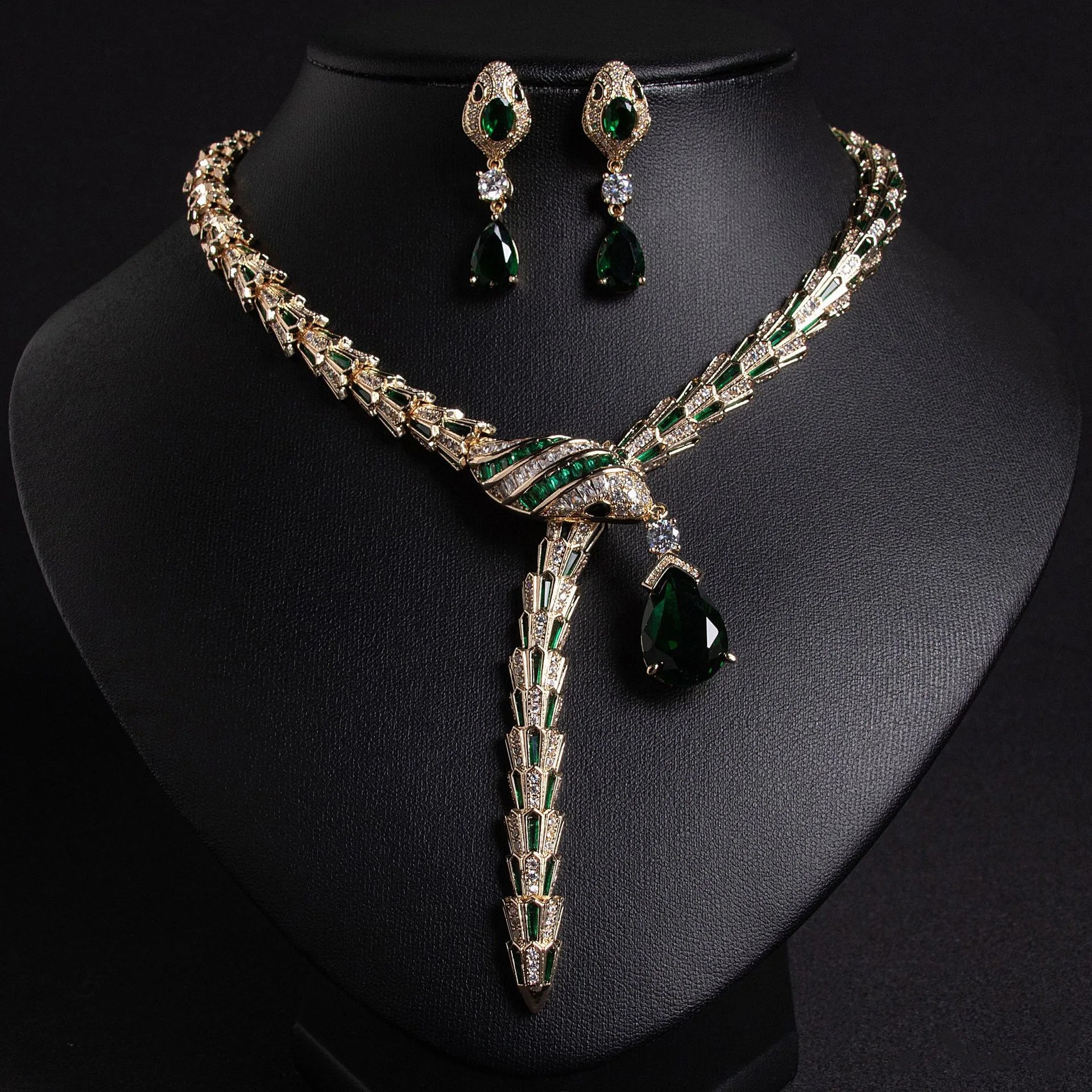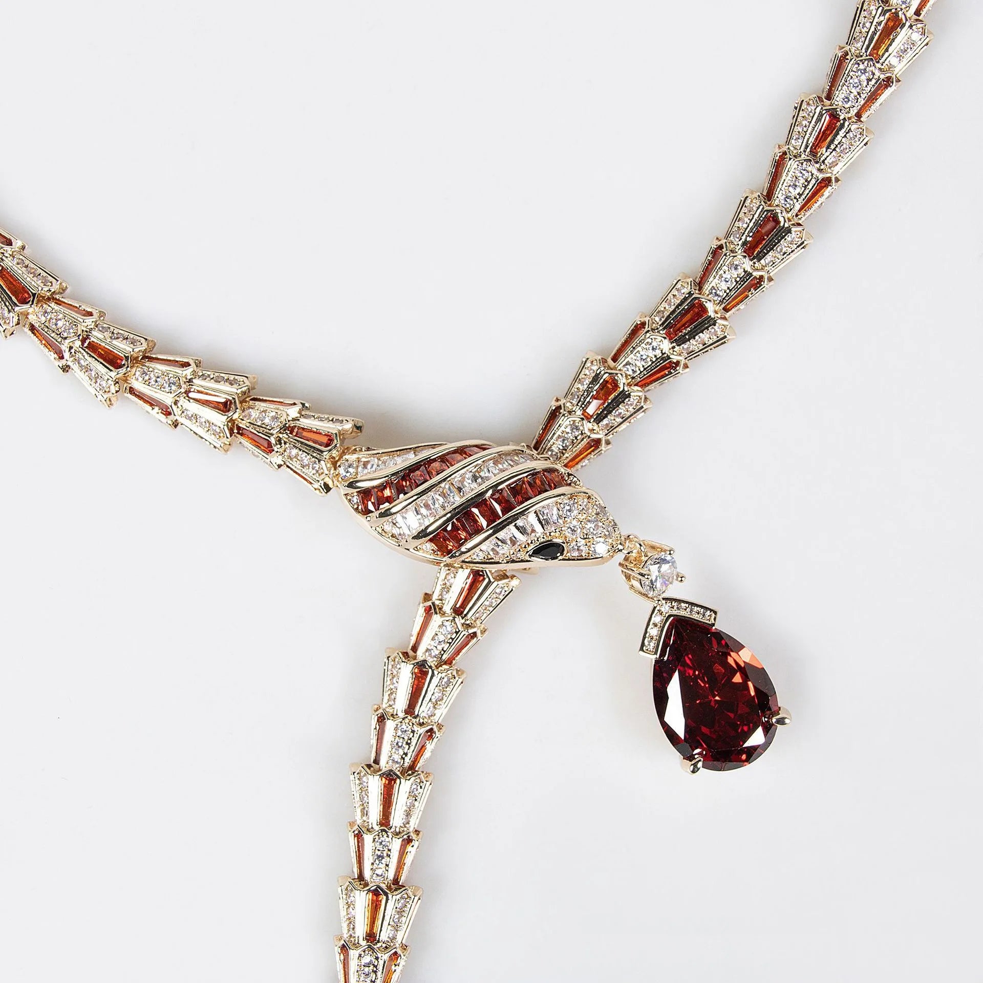 European and American Retro Elegant Red Snake-Shaped Necklace and Earrings Set Inlaid with 5A Zircon - High-Quality Fashion Jewe