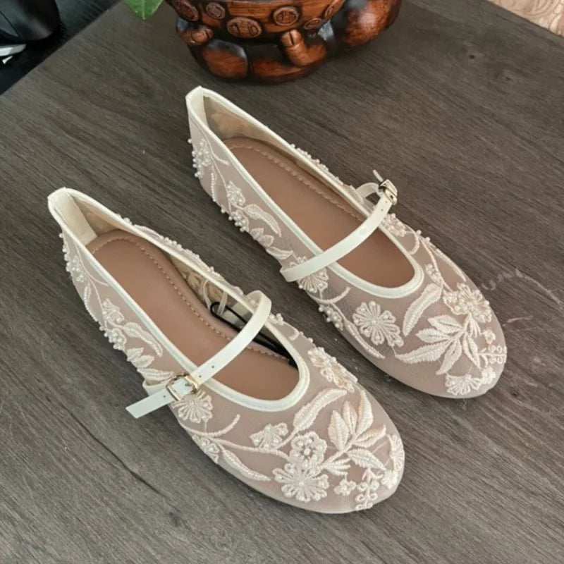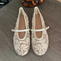 Floral Embroider Mesh Mary Janes Shoes Lady Luxury Designer Footwear Comfortable Summer Light Daily Walking Women Ballet Flats