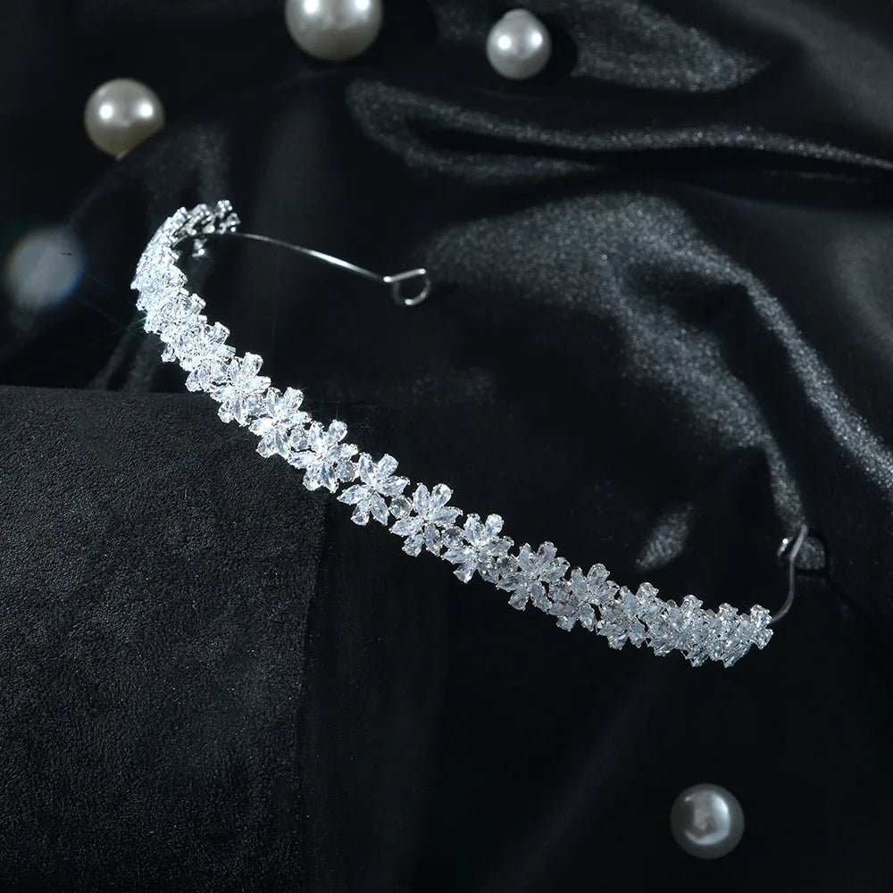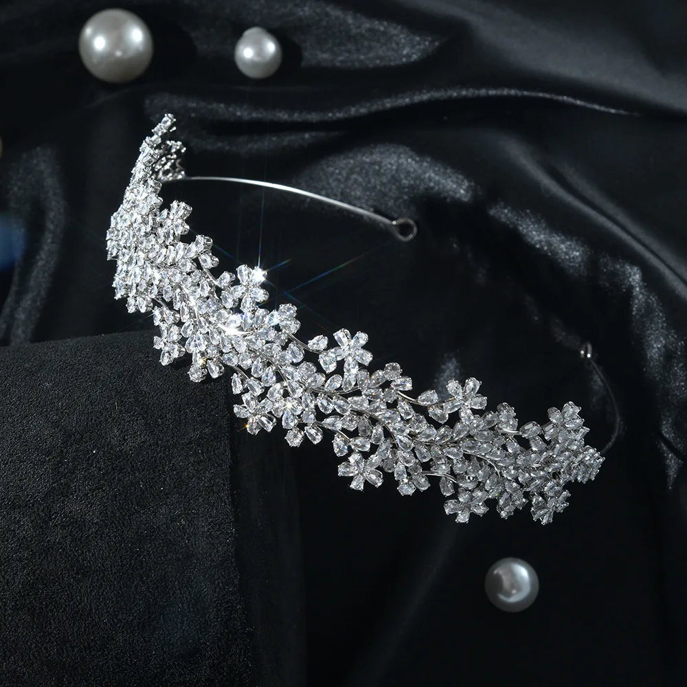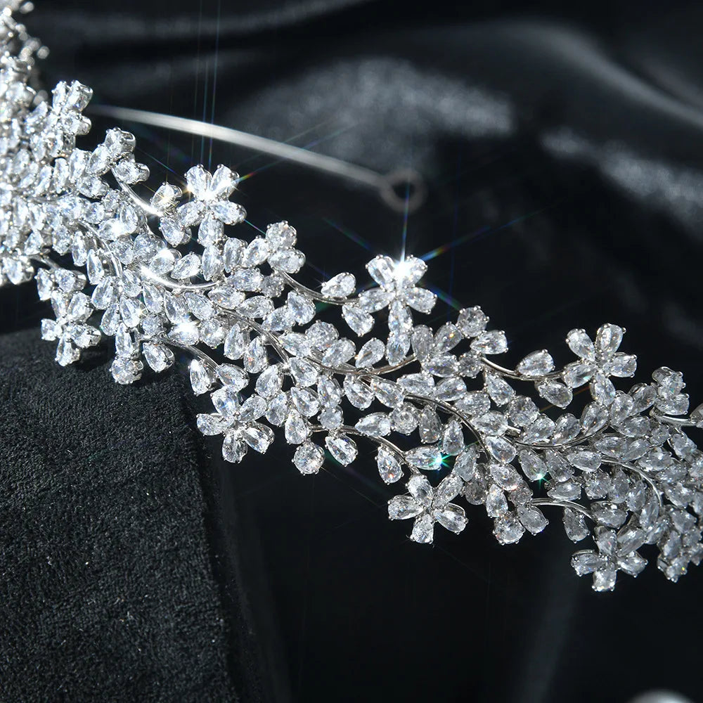 Flower Zircon Tiaras and Crowns CZ Zirconia Headpieces For Brides Prom Pageant Headband Wedding Accessories Bridal Hair Jewelry