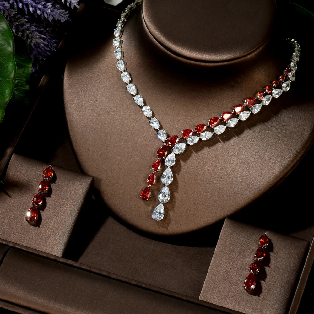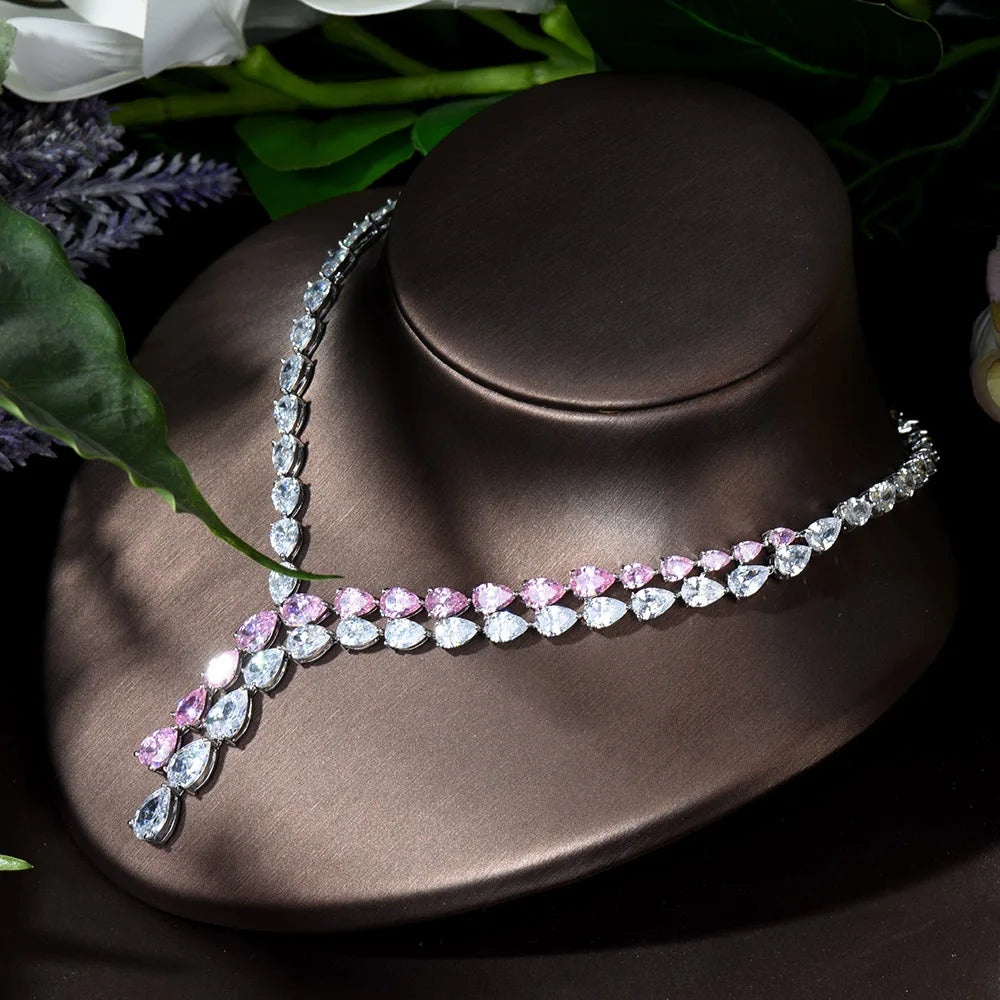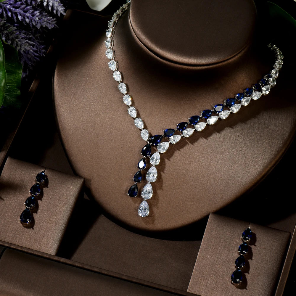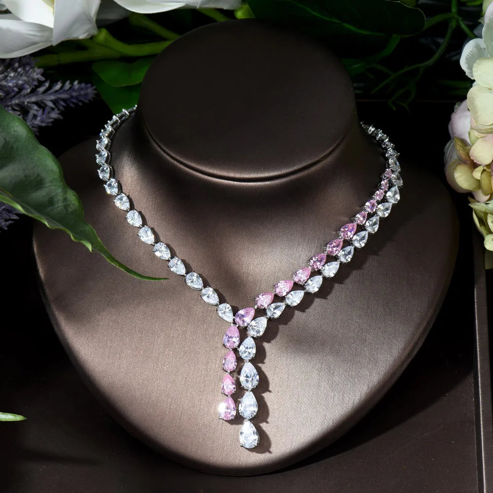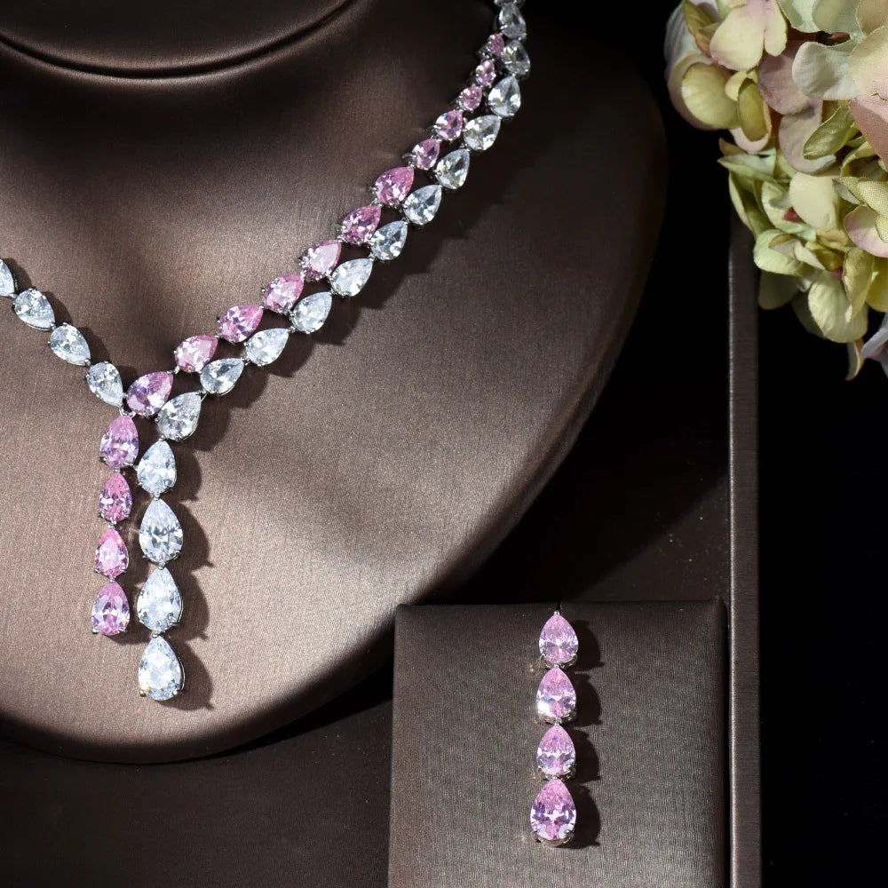 HIBRIDE Clear Best Quality Brilliant Crystal Zircoina Earrings And Necklace Bridal Jewelry Set Wedding Dress Accessories N-1453