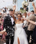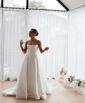 Minimalist Strapless Satin Wedding Dress – Elegant Structured A-Line Bridal Gown with Train | Maison Bridal