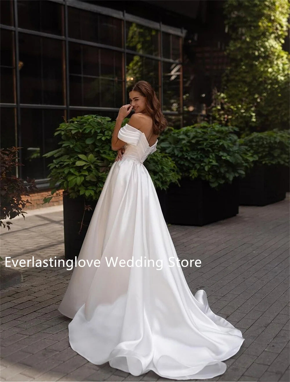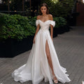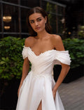 Hot Sale Off The Shoulder Lace Applique Pleat Satin A Line Bridal Grown Wedding Dresses Side Slit Custom Made 2026 Rode De