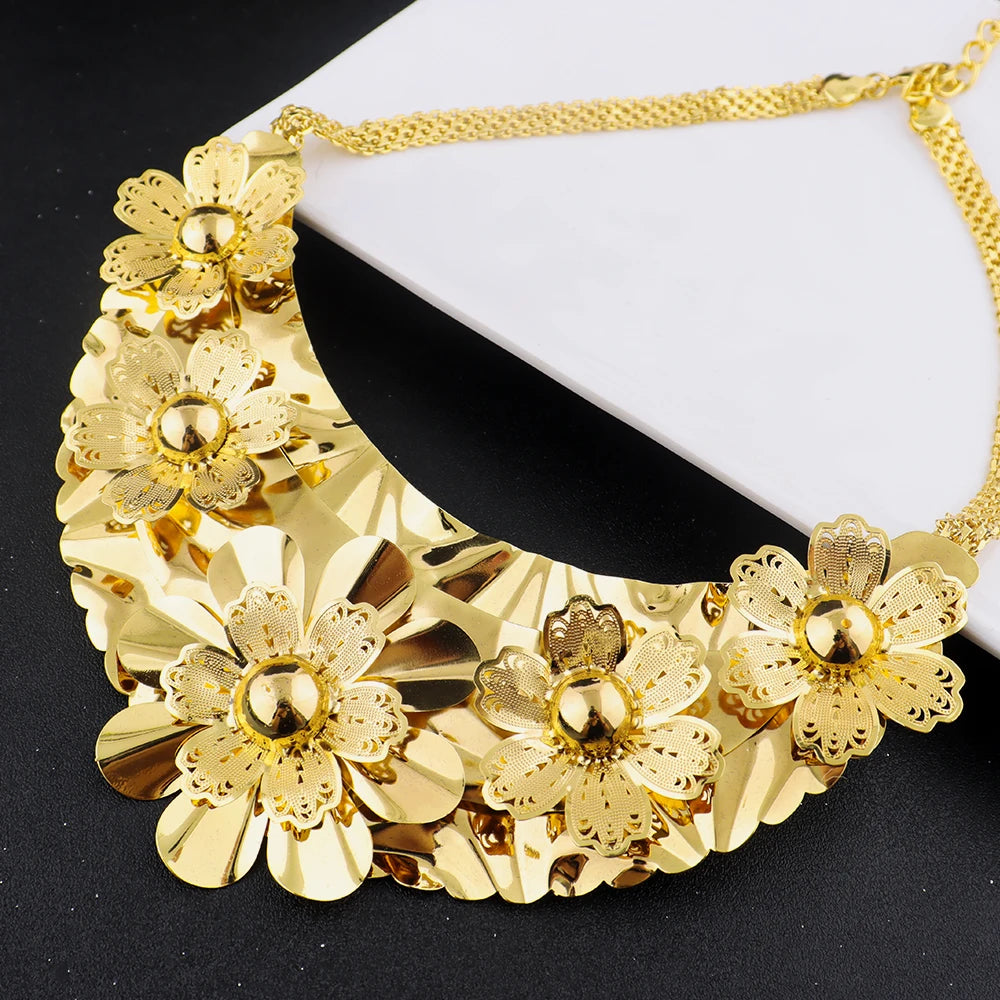Indian Dubai Luxury 24k Gold Plated Earrings Necklace Ring Bangle Jewelry Set For Women America Bridal Set Wedding Party Gifts