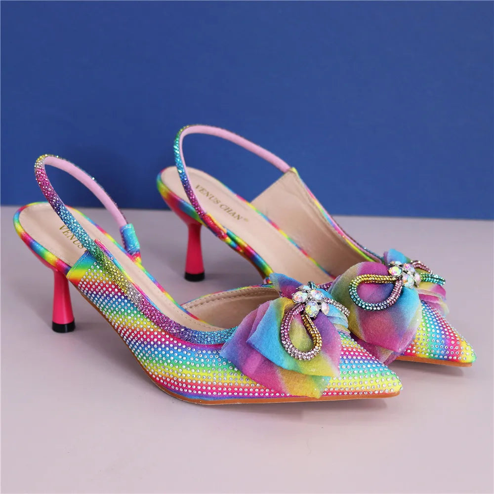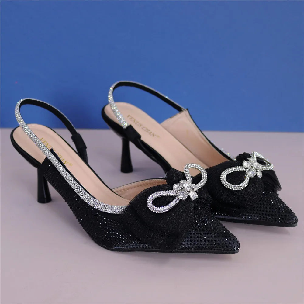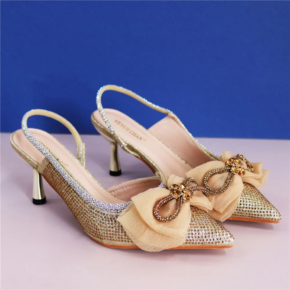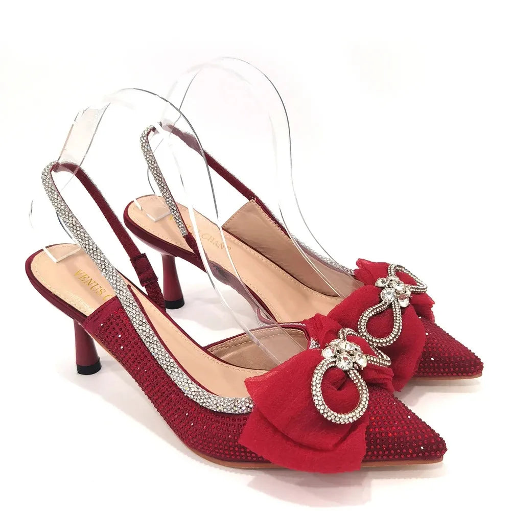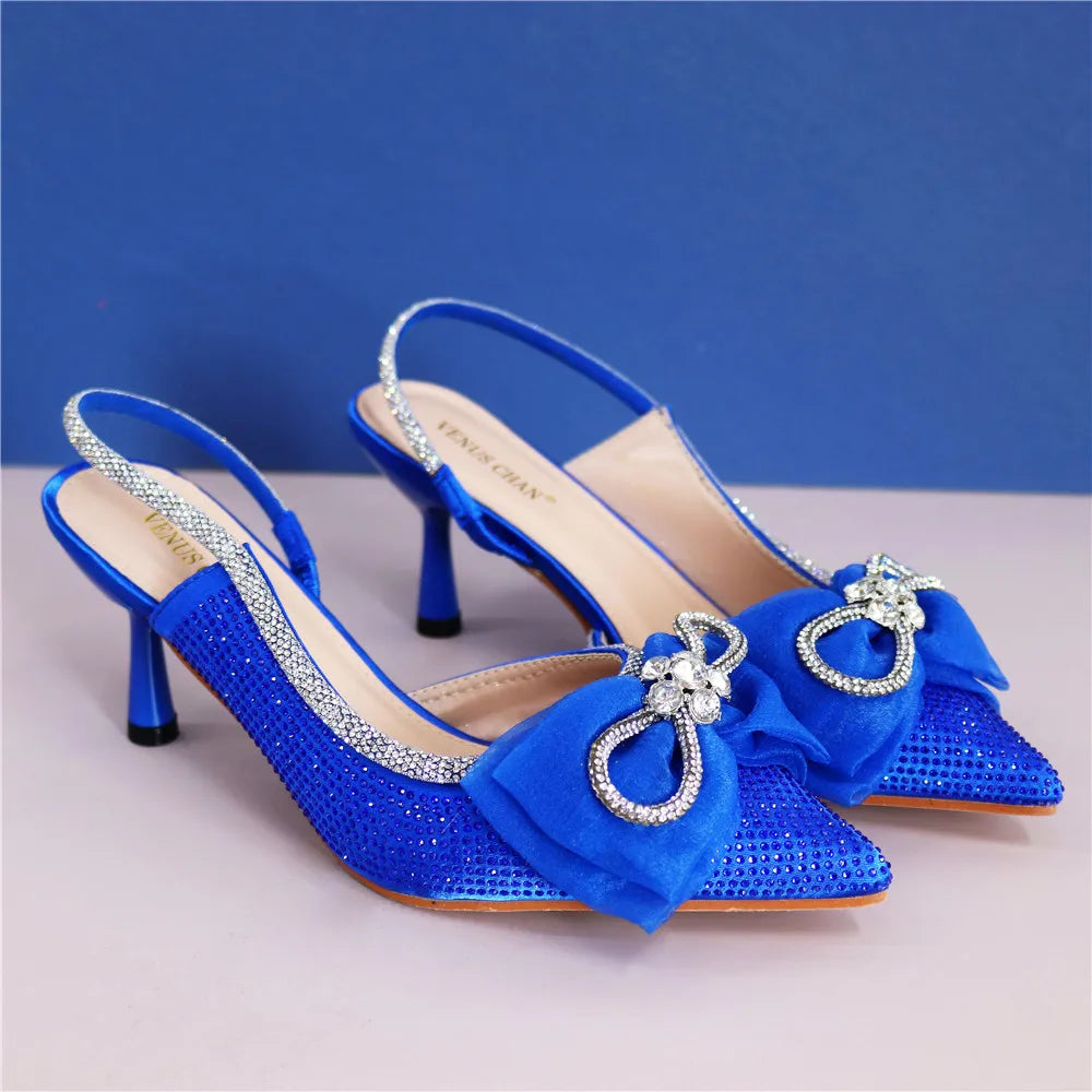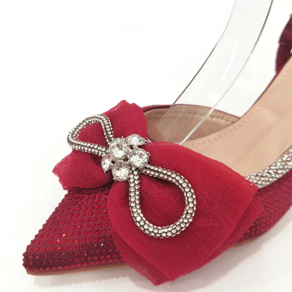 Italian Women Wedding Sandals Decorated with Rhinestone Pointed Toe Pumps High Heels Sexy Ladies Wedding Shoes Bride Party Pumps