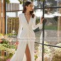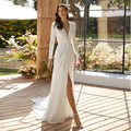 Ivory Elegant Bridal Dress Mermaid Full Sleeves Satin Wedding Gowns for Women 2025 V Neck Bride Split Wedding Dresses Long