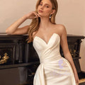 Ivory Satin Evening Dress Women Off Shoulder Pleated Bridal Formal Long Tail Tight Sexy Ball Gowns Party Pageant Dress