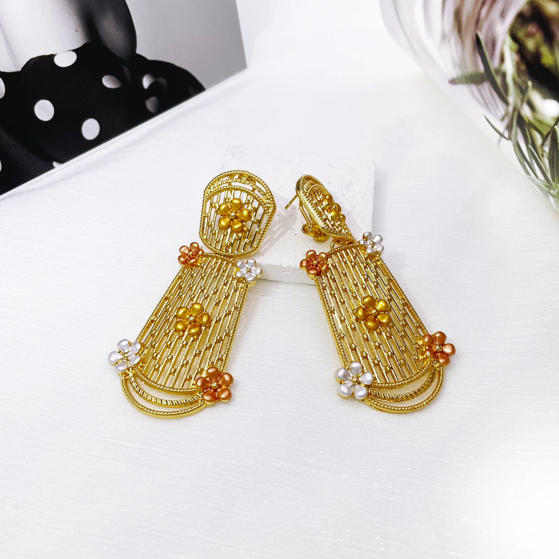 Jewelry Set For Women Tricolor Plating Luxury Design Necklace Earrings Bangle And Ring Full Set Jewelry Wedding Party Gift