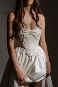 Kyoto Customized Gorgeous Flowers Pearl Chain Strapless Corset Wedding Dress A-Line vestidos de novia Sweep Train Evening Dress