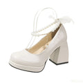 Ladies' elegant high heels Chunky Platform High Heels Women Leather Ankle Buckle Mary Jane Shoes Woman Pearl Pumps Zapatos Mujer