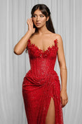 Lena Side Slit Dress Women Elegant Party Dresses Woman Wedding Dress Fish Tail Crystal Off the Shoulders Shiny Evening Gown Gala