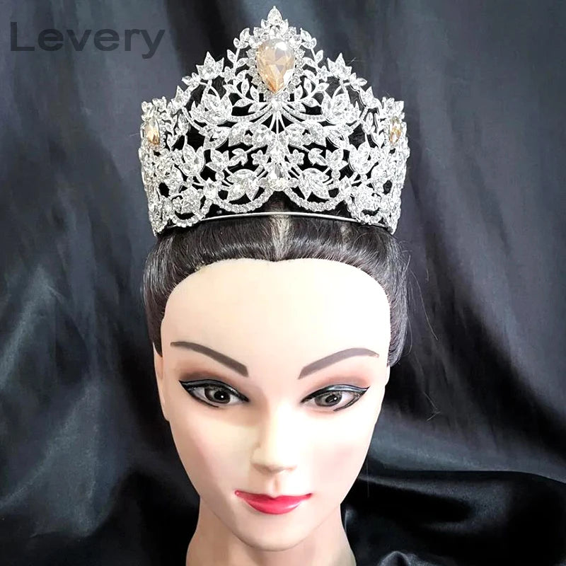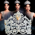Levery Design Miss Universe “Power of Unity” crown replica Rhinestone Tiara Large Crown Adjustable Bridal Wedding Party Big Crow