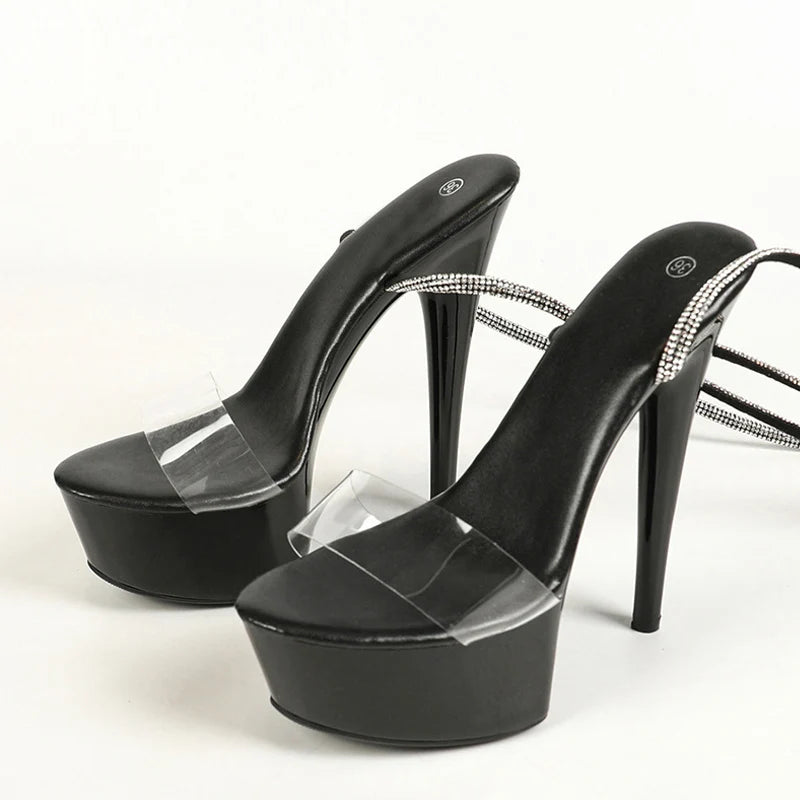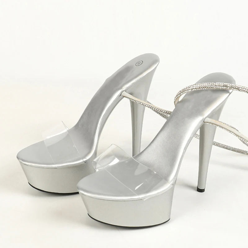 Liyke Sexy Red Crystal Rhinestone Ankle Strap Women Transparent Platform Sandals Summer Super High Heels Wedding Banquet Shoes