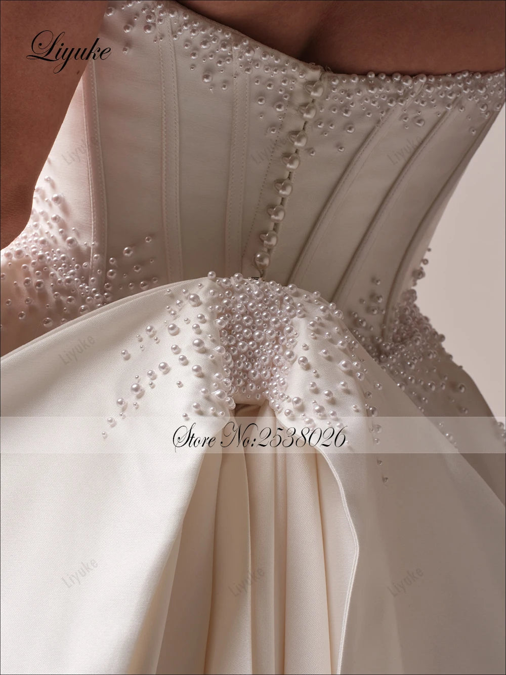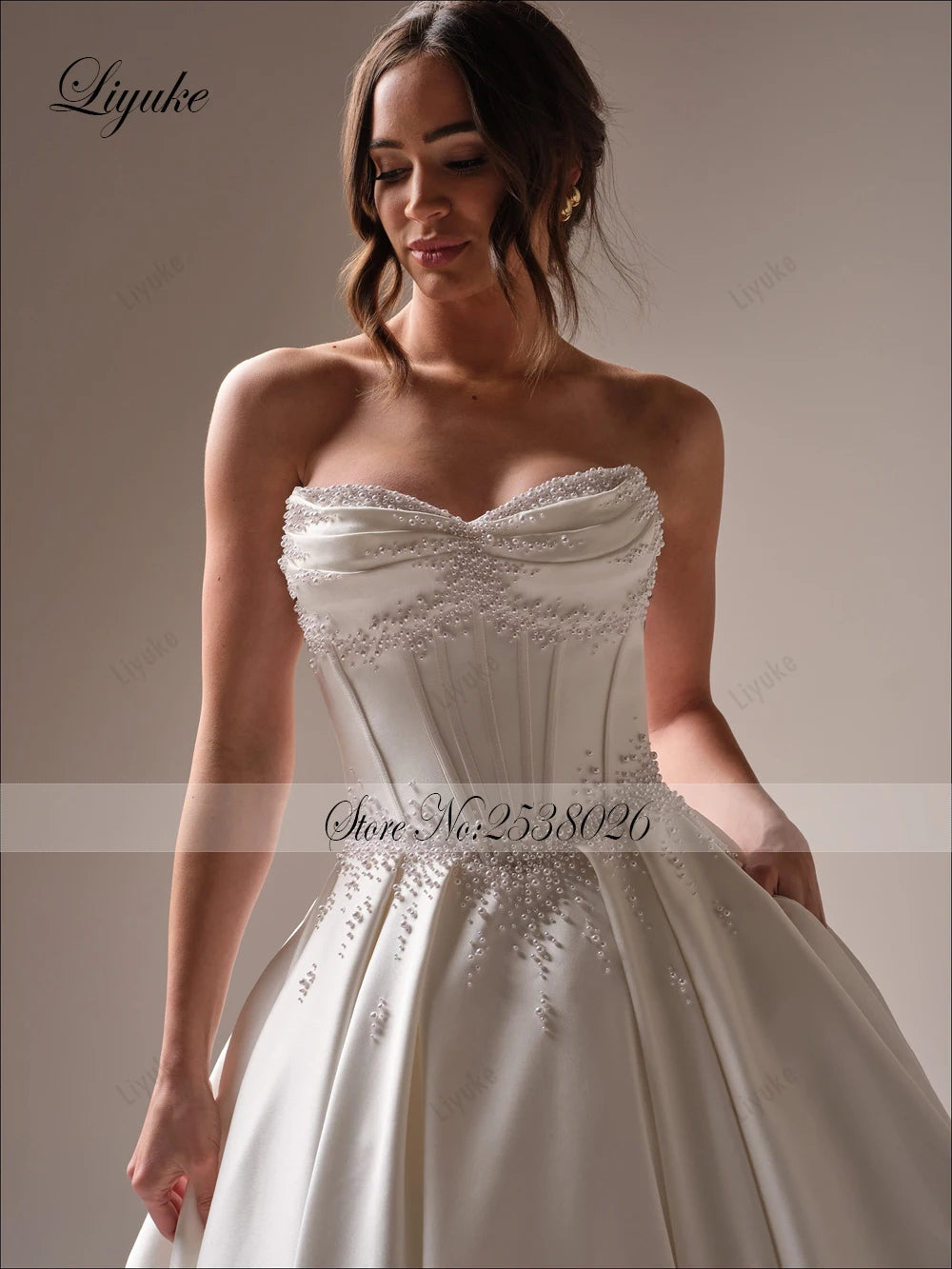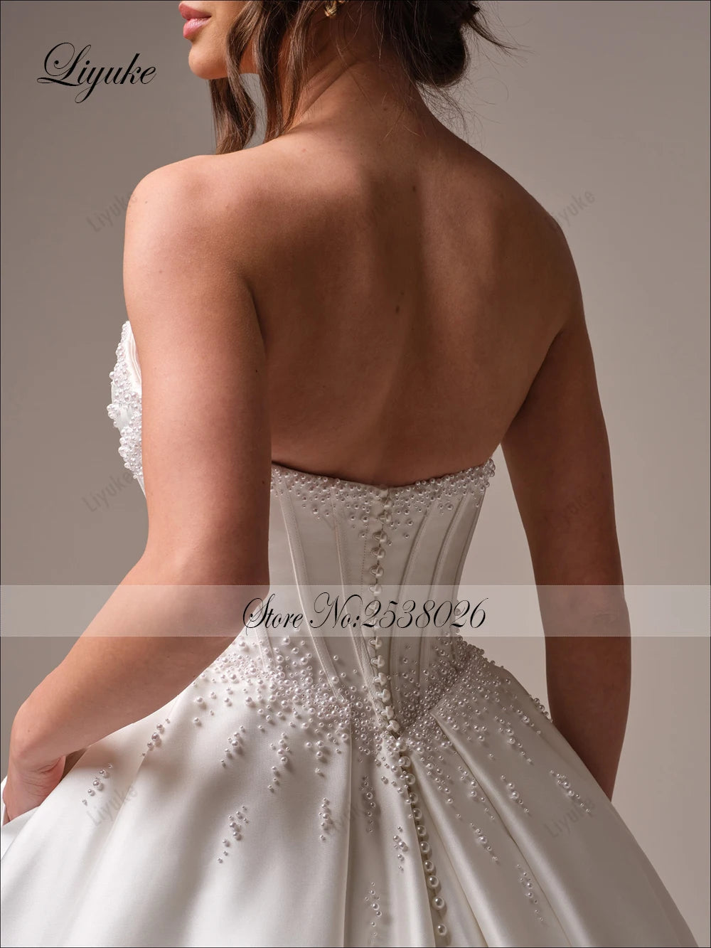 Liyuke Custom Made Beading Pearls Princess A-Line Wedding Dresses Sweetheart Bridal Gowns With Removable Bow
