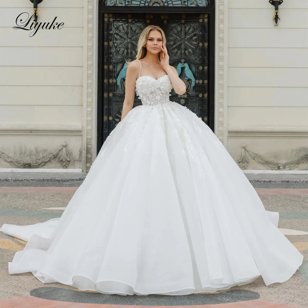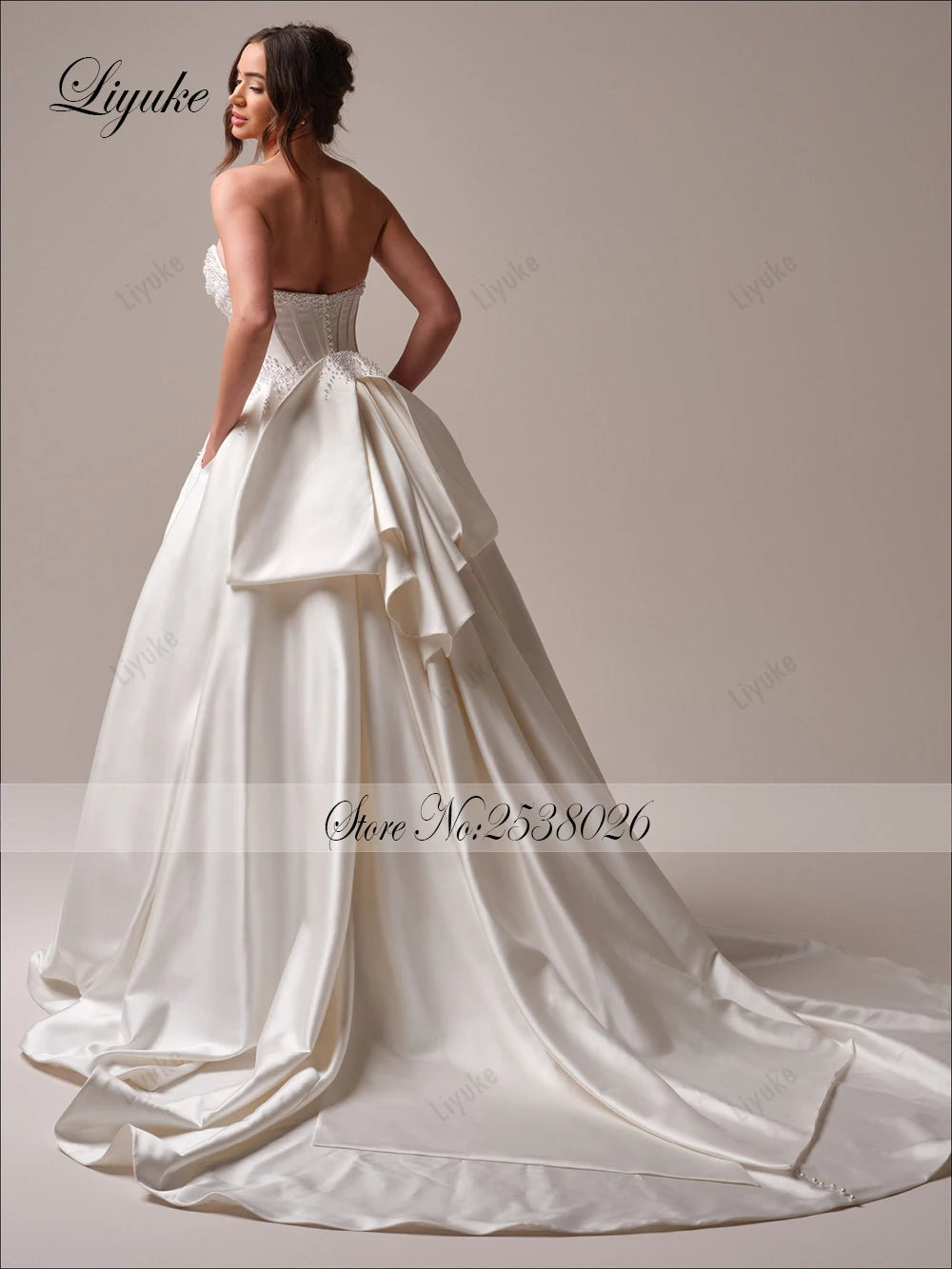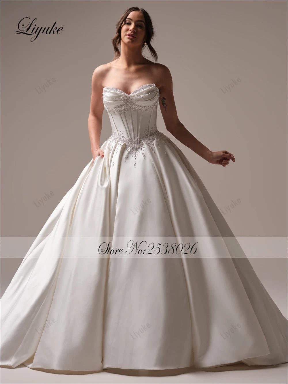 Liyuke Custom Made Beading Pearls Princess A-Line Wedding Dresses Sweetheart Bridal Gowns With Removable Bow