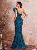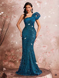 Lucyinlove Luxury Slanted shoulder Sequins Maxi Evening Dresses Waist-cinching mermaid Wedding Party Night Elegant Cocktail Gown