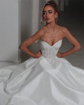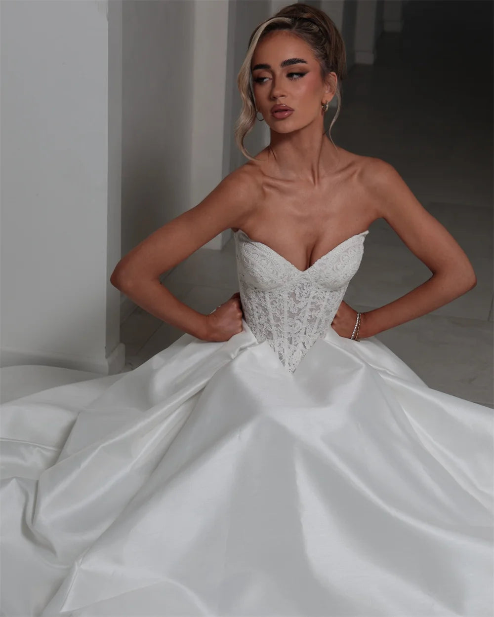 Luxurious Sweetheart Lace Applique Satin Bridal Grown A Line Wedding Dresses Custom Made Bridal Grown 2026 Vestido De Noival
