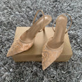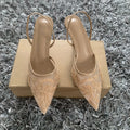 Luxury Brand High Heels Women Sandals Mesh Embroider Elegant Pointed Ladies Slingback Evening Party Wedding Bridal Dress Shoes