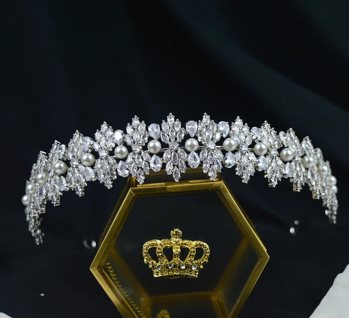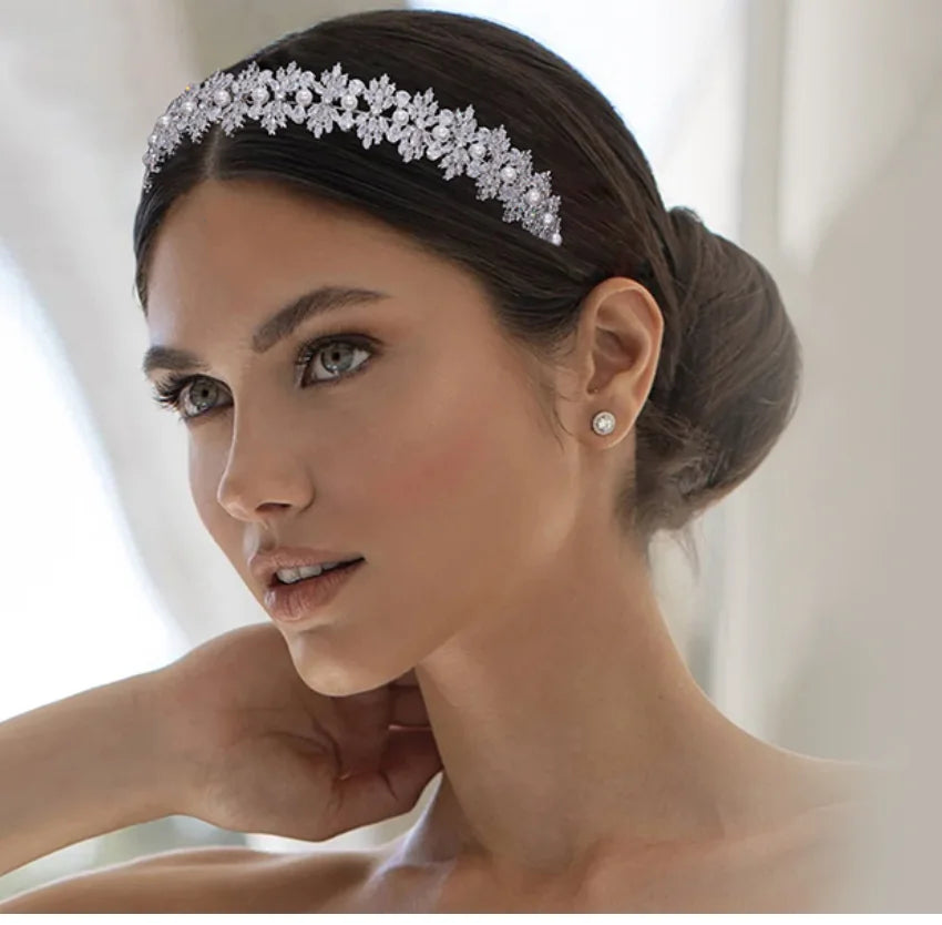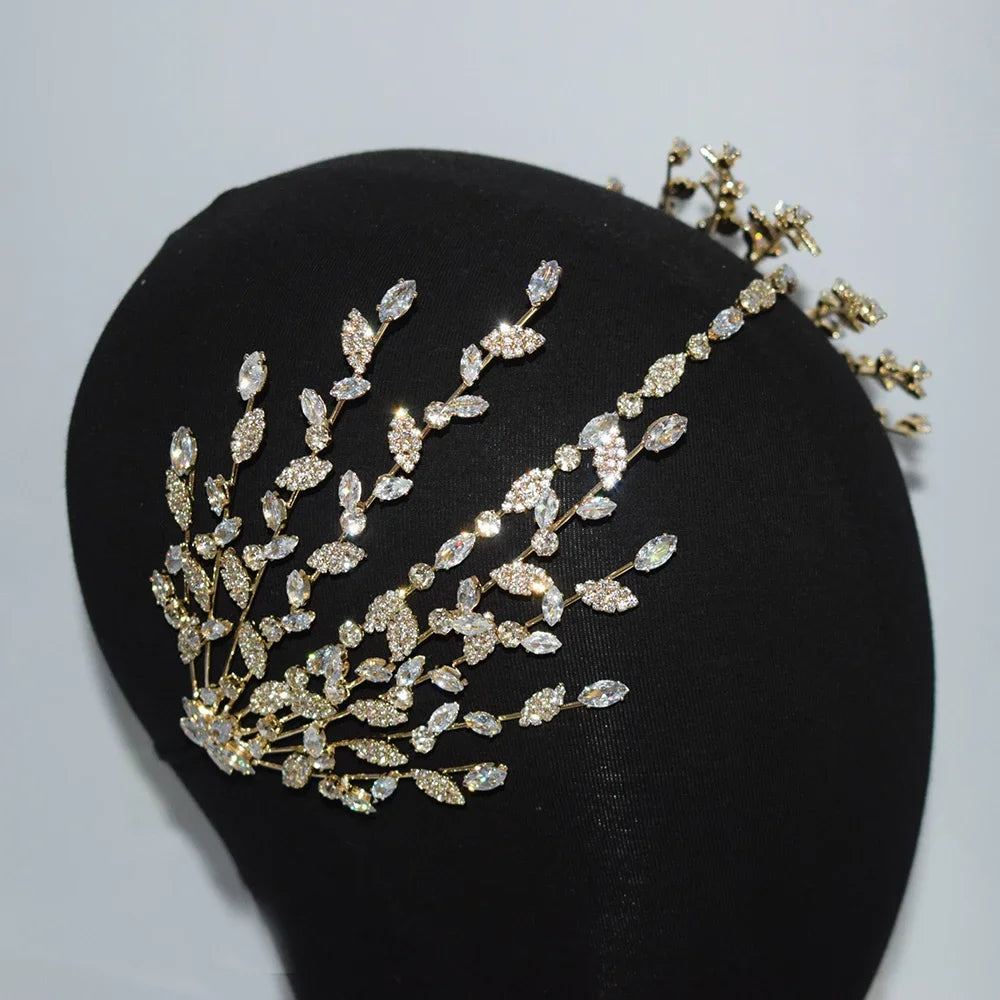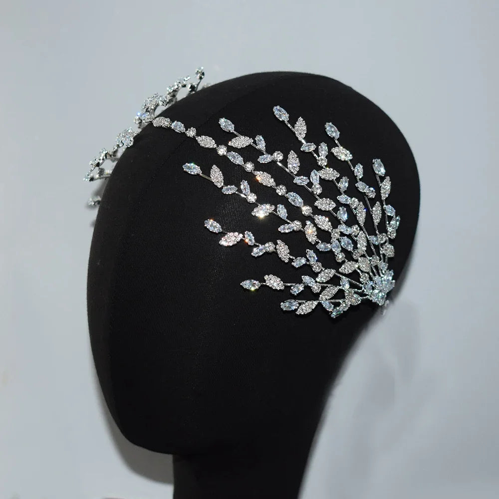 Luxury Bridal Headband Wedding Headdress Cubic Zirconia Bride Tiaras Crowns Women Diadem 15 Years Prom Hair Jewelry Headpieces