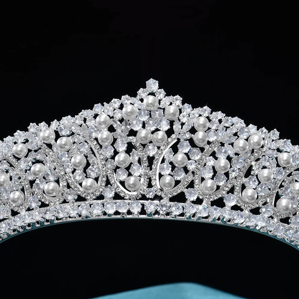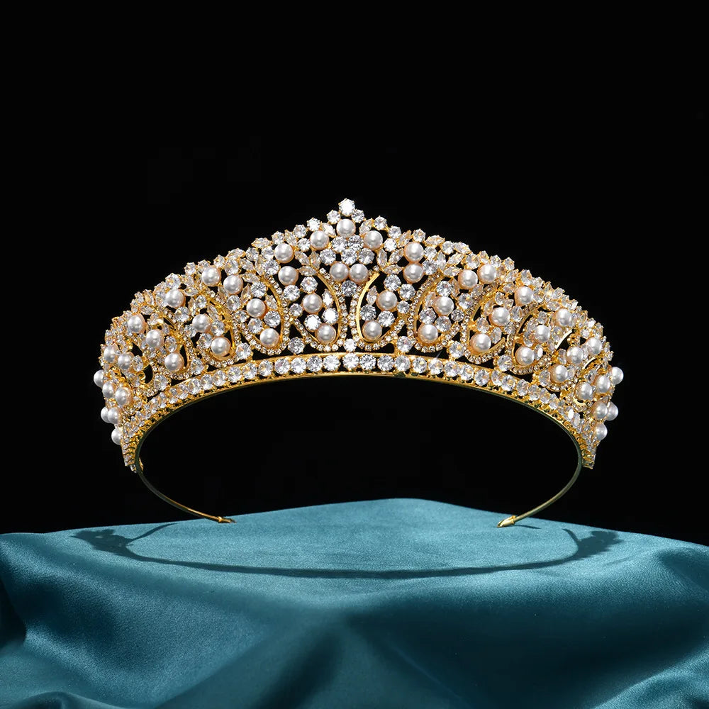 Luxury Bridal Tiaras Crowns For Wedding Headdress Princess Queen Pearl Crowns For Women Pageant Bride Hair Jewelry Headpieces