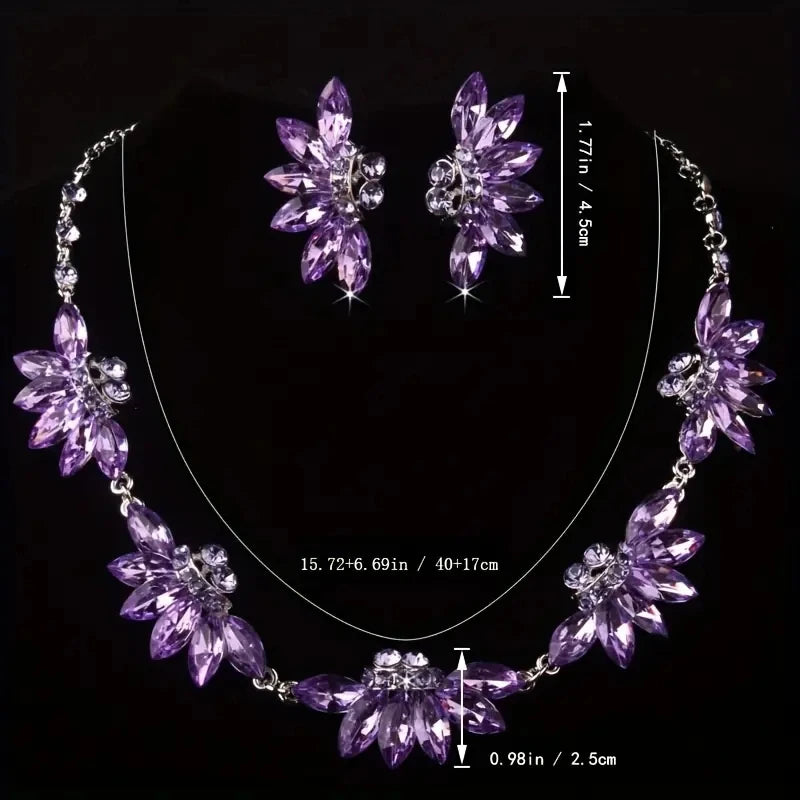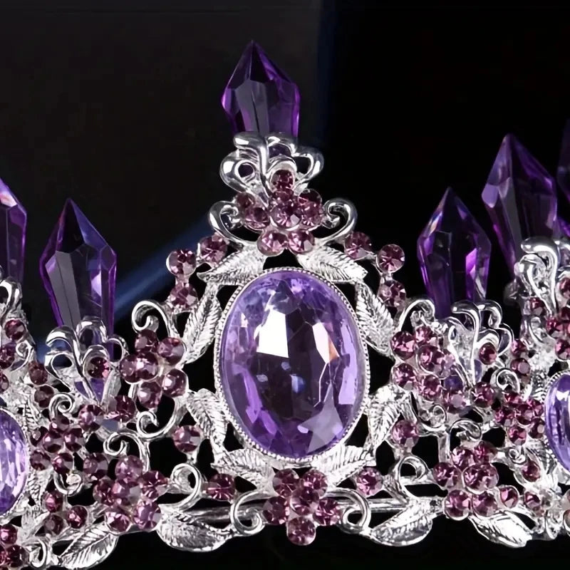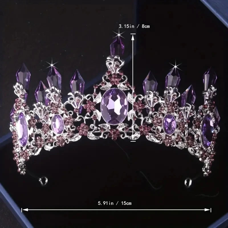 Luxury Elegant Purple Crystal Bridal Accessories Perfect Birthday Gift Shooting Performance Festival Fashion Crown Necklace Set