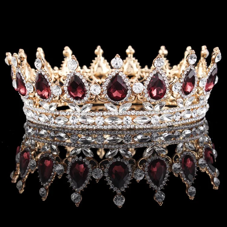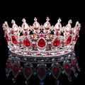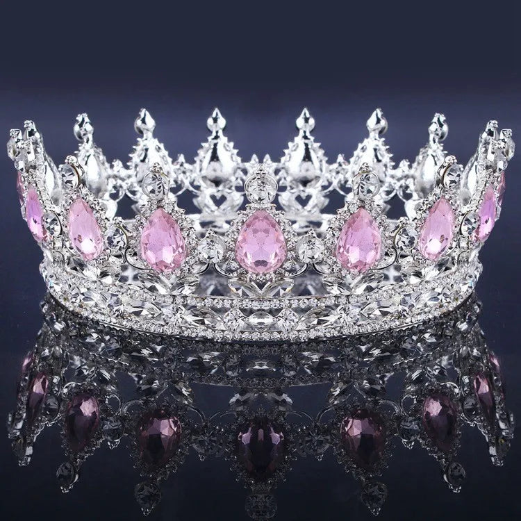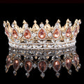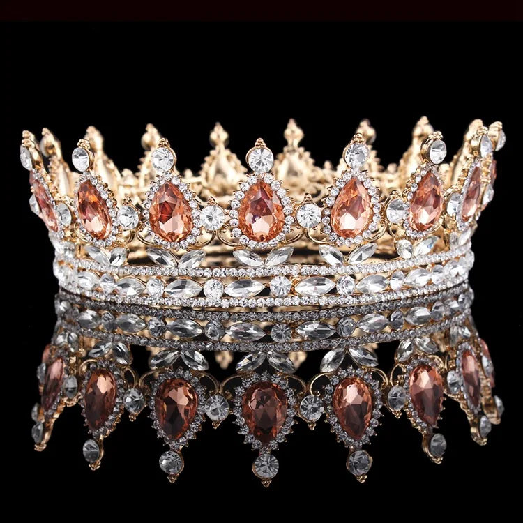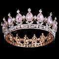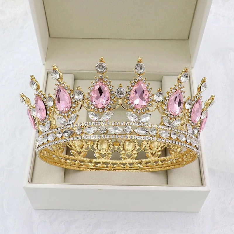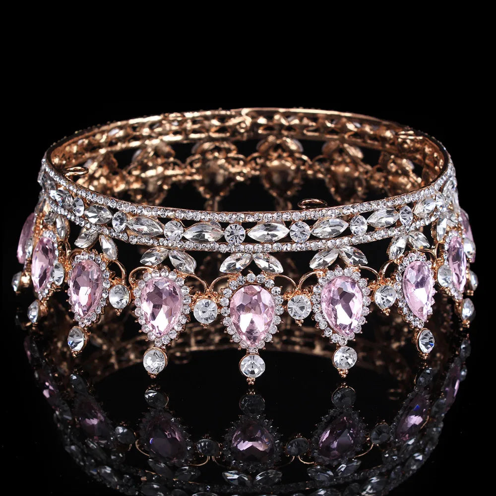 Luxury Retro Gold Color Pink Crystal Round Bridal Crown Classic Baroque Rhinestone Diadem Tiaras Women Wedding Hair Accessories