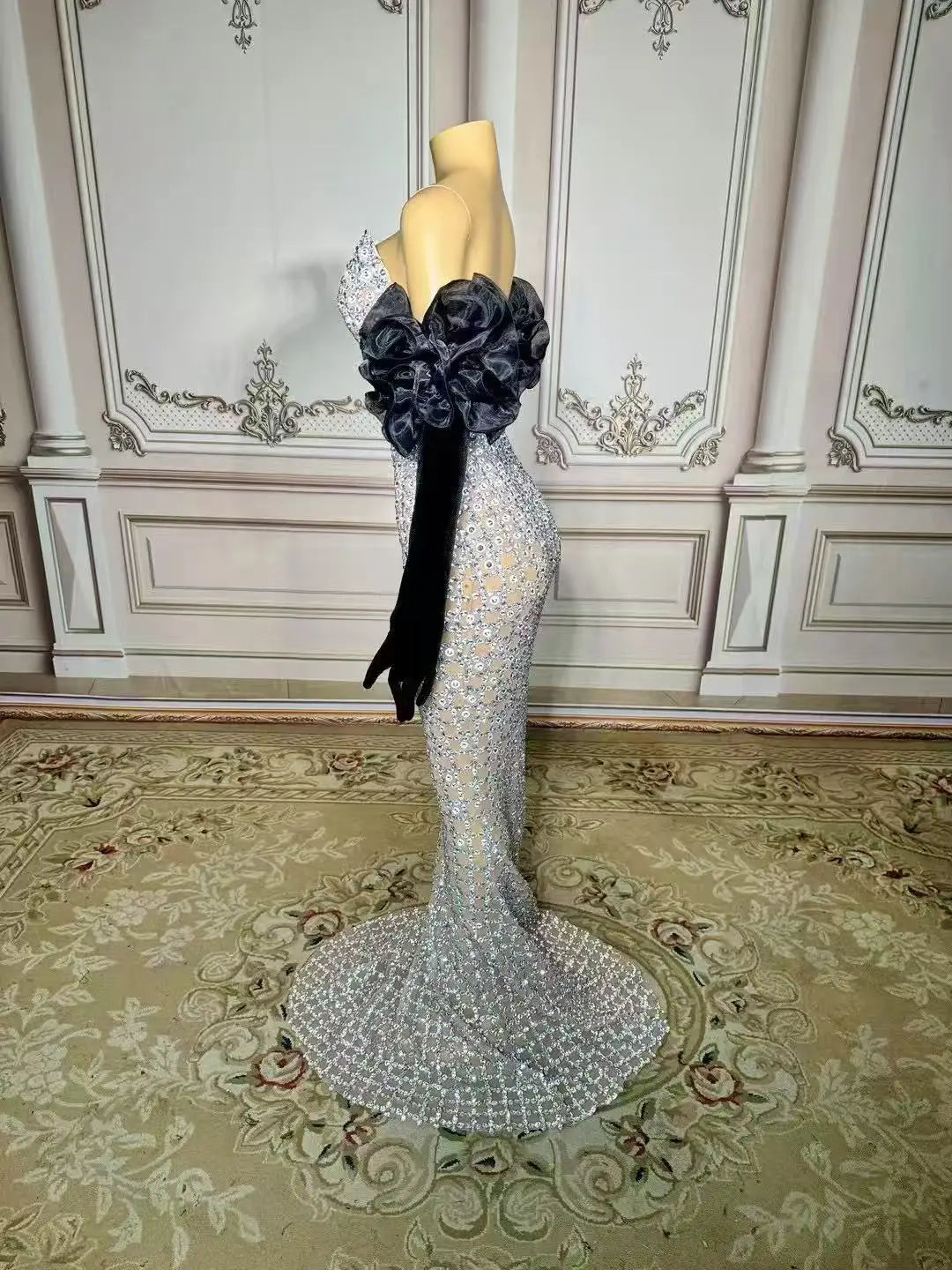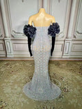Luxury Sparkly Sexy Black Girl Prom Dresses 2025 Long Sleeves Strapless Beaded Diamonds Mermaid Women Evening Dress Customized